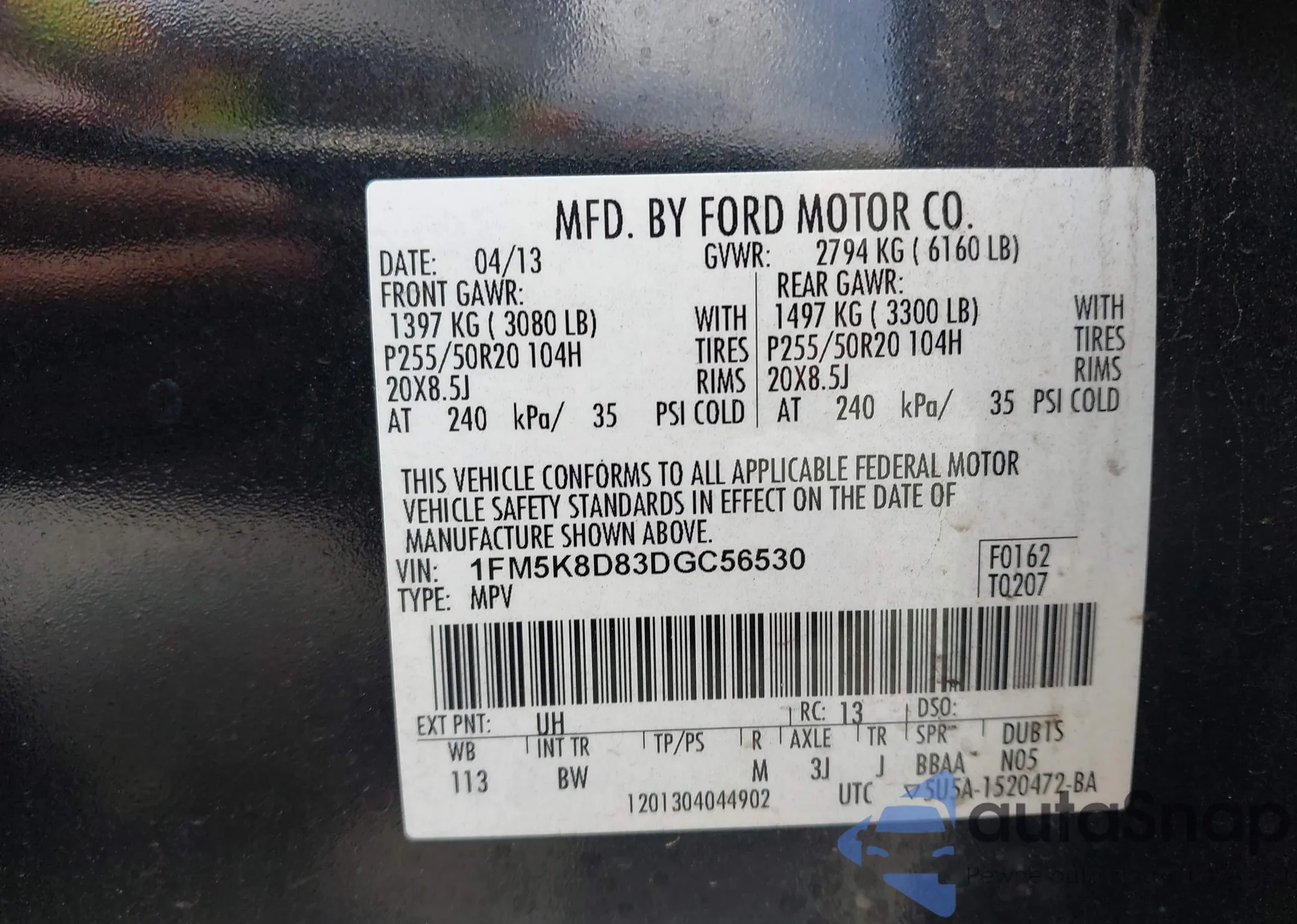 • VIN 3FADP4EJ0KM130940