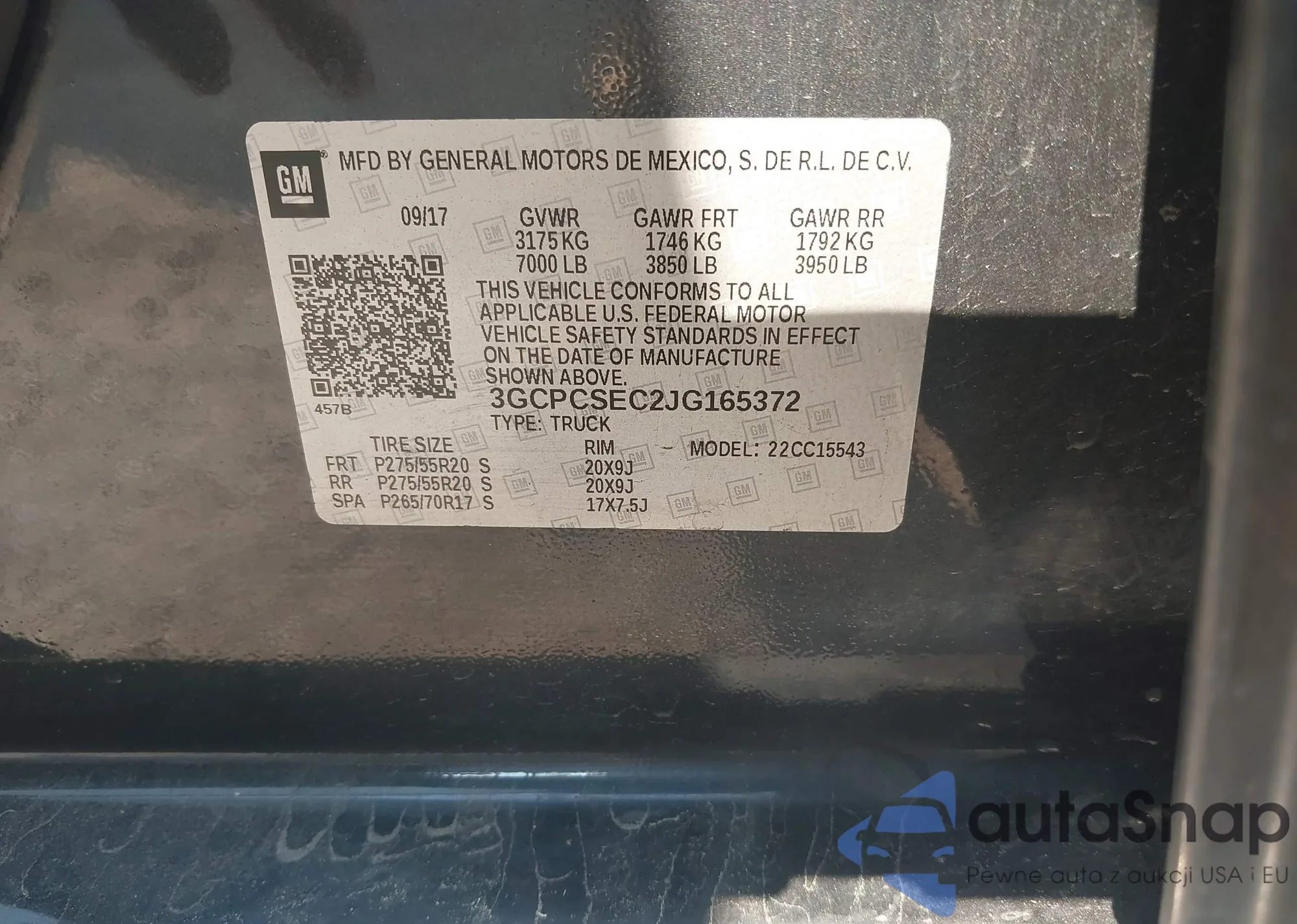 • VIN 3GCPCSEC2JG165372