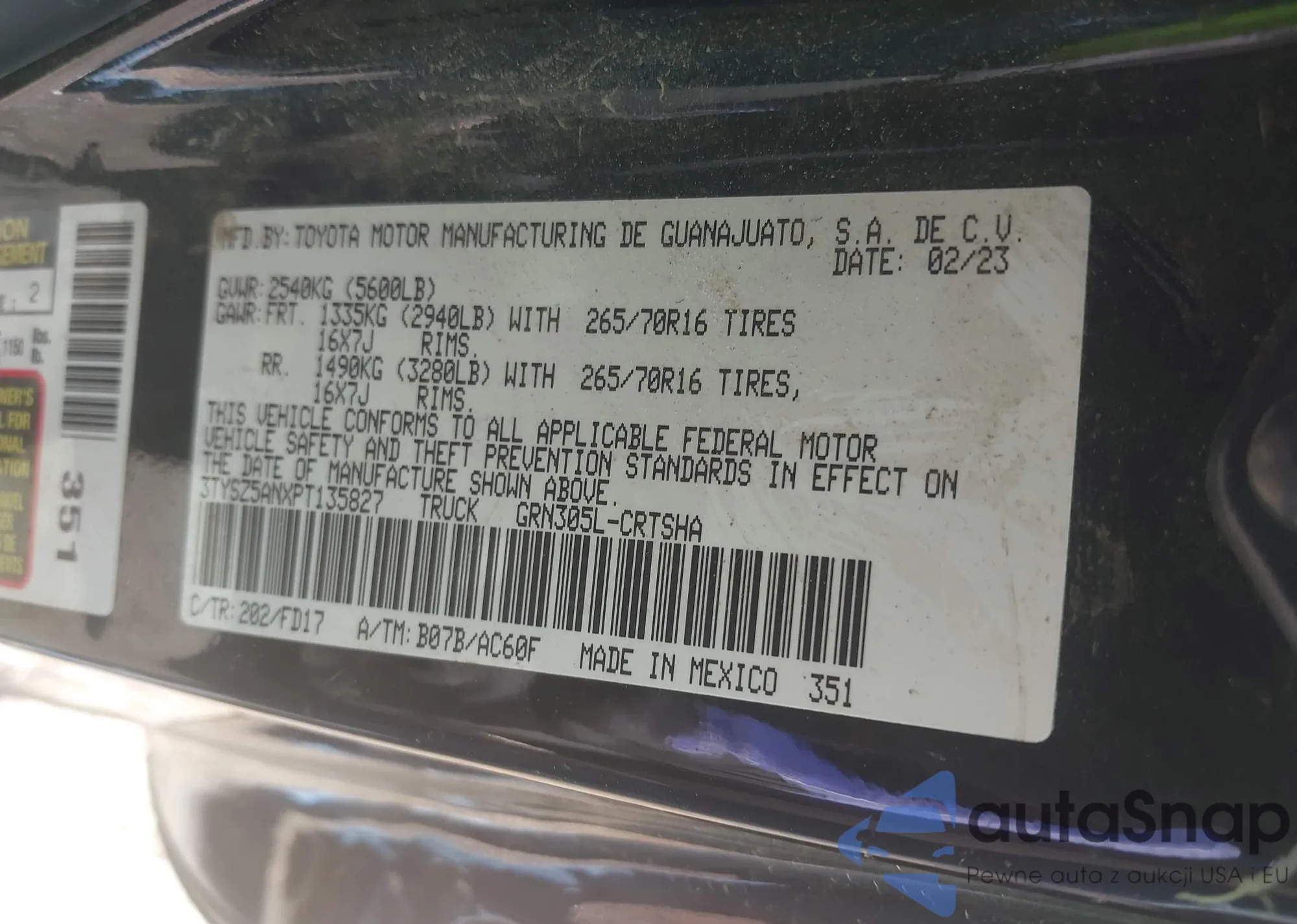 • VIN 3TYSZ5ANXPT135827