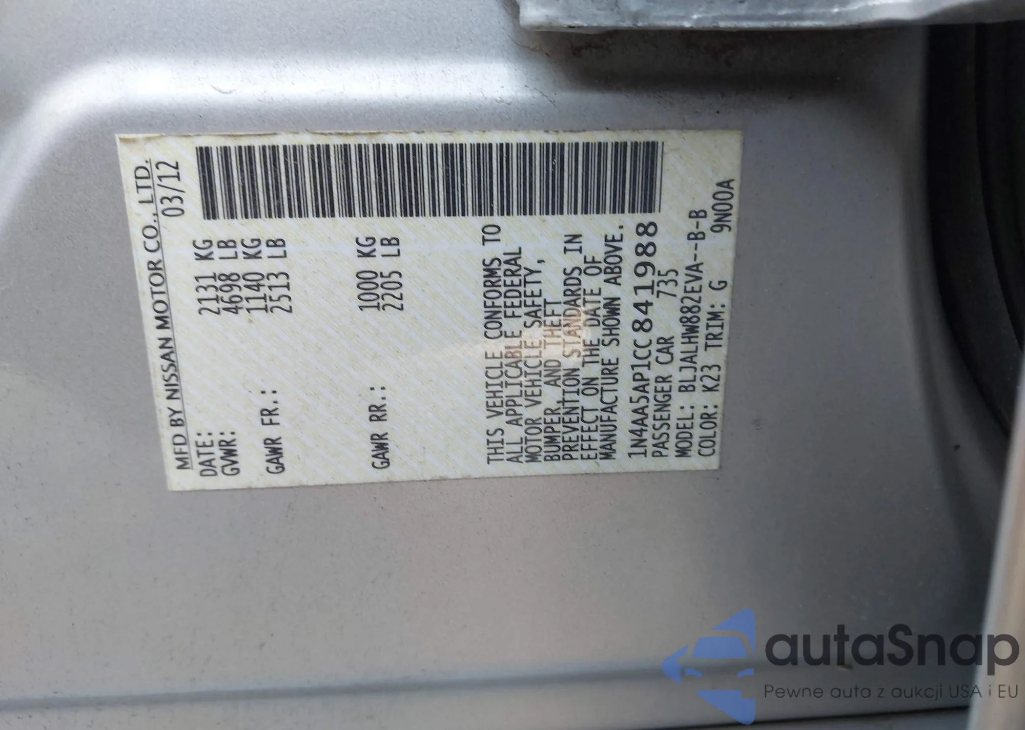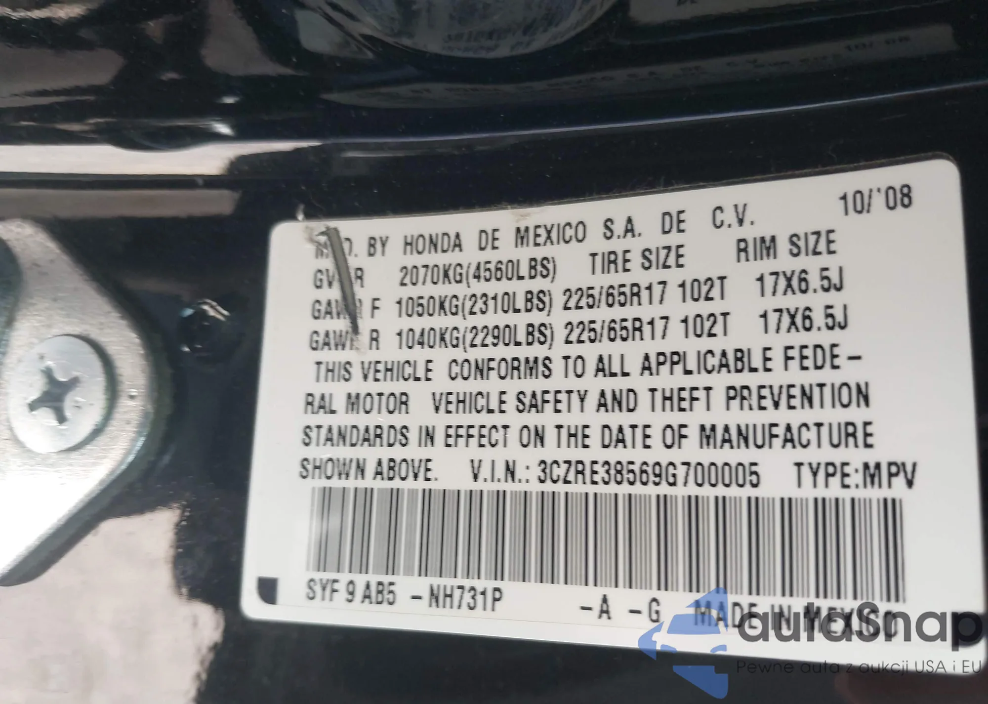 LOT: 42585798 VIN: JHMAP21455S003516