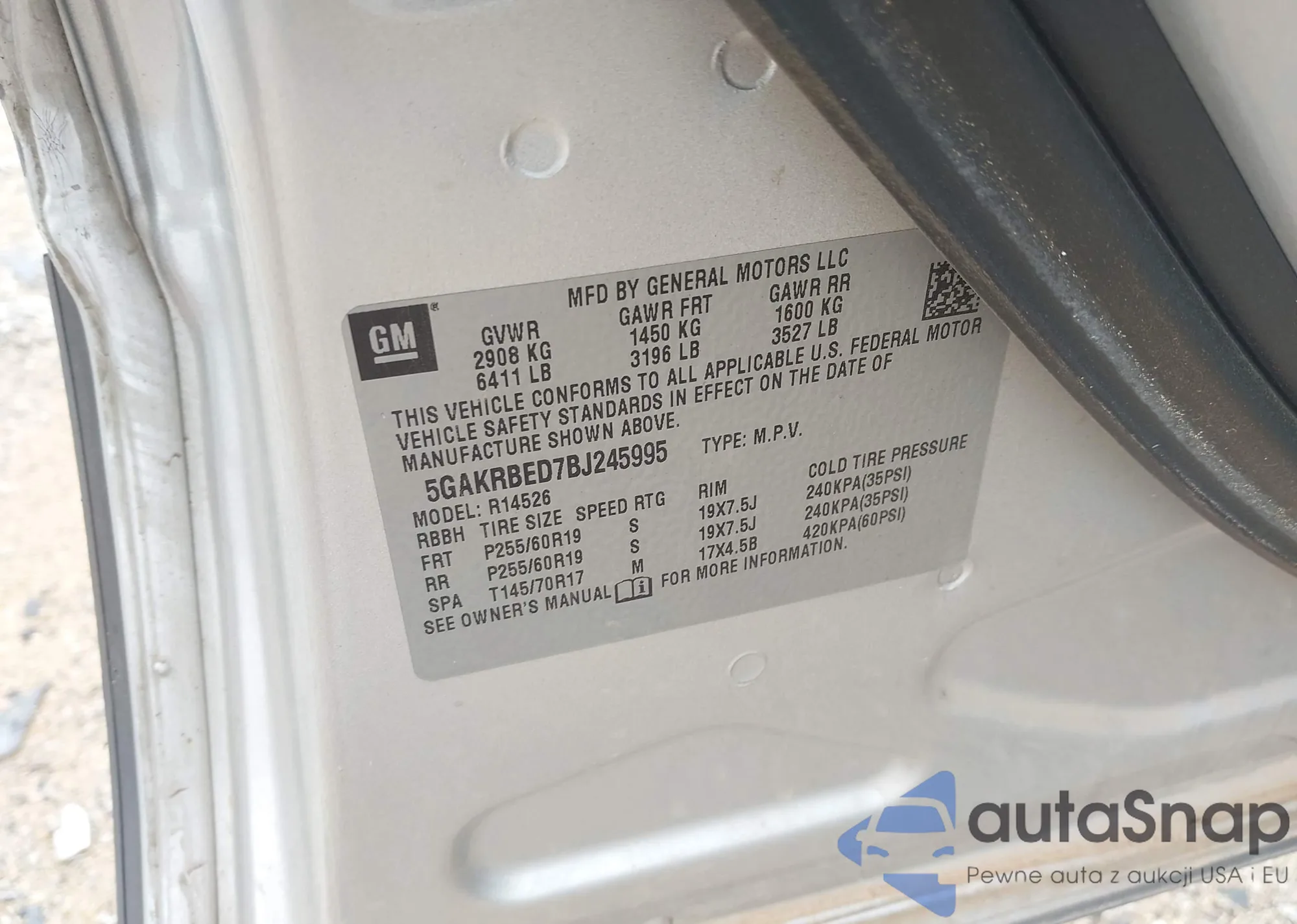 • VIN KL4CJESB0KB839833