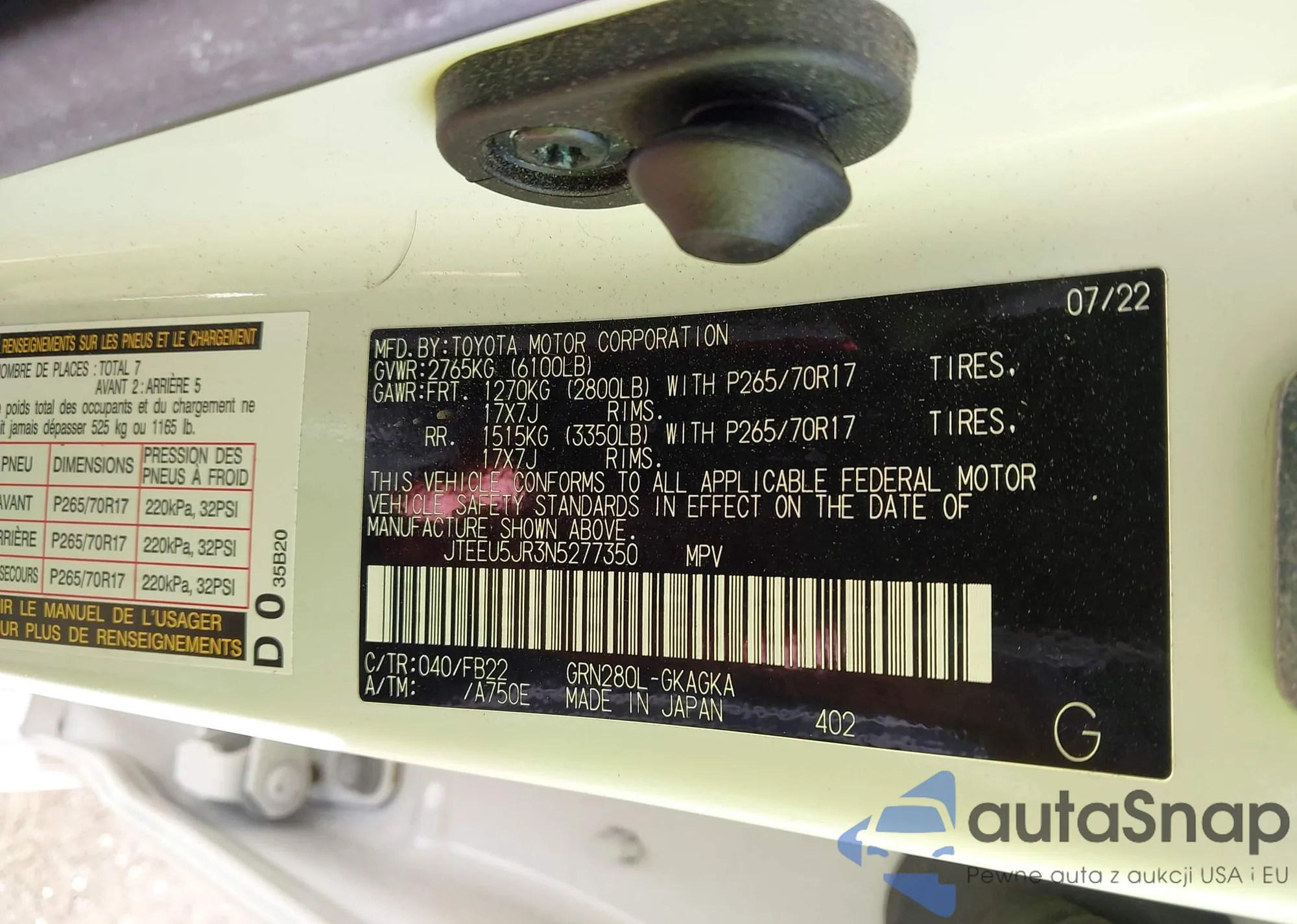 • VIN JTEEU5JR3N5277350