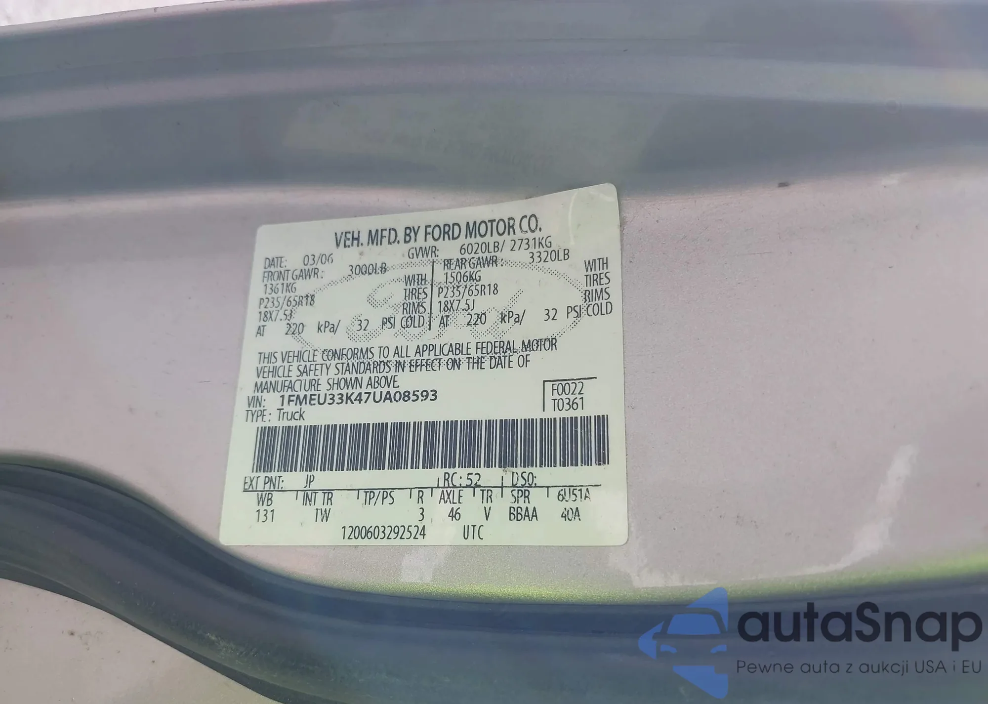 LOT: 43524142 VIN: 5UXFE83547LZ38978