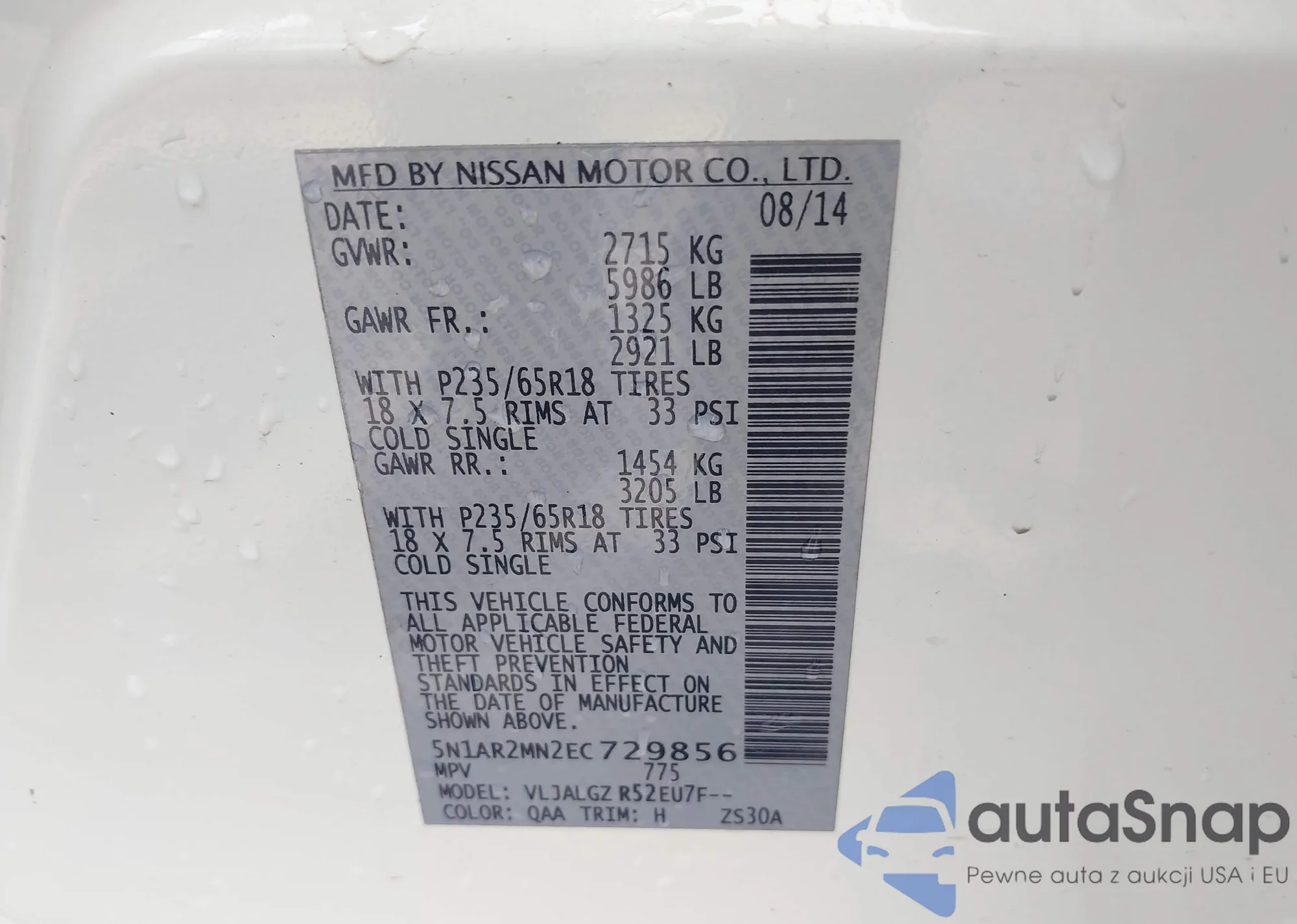 • VIN JN8AS5MV2DW666074