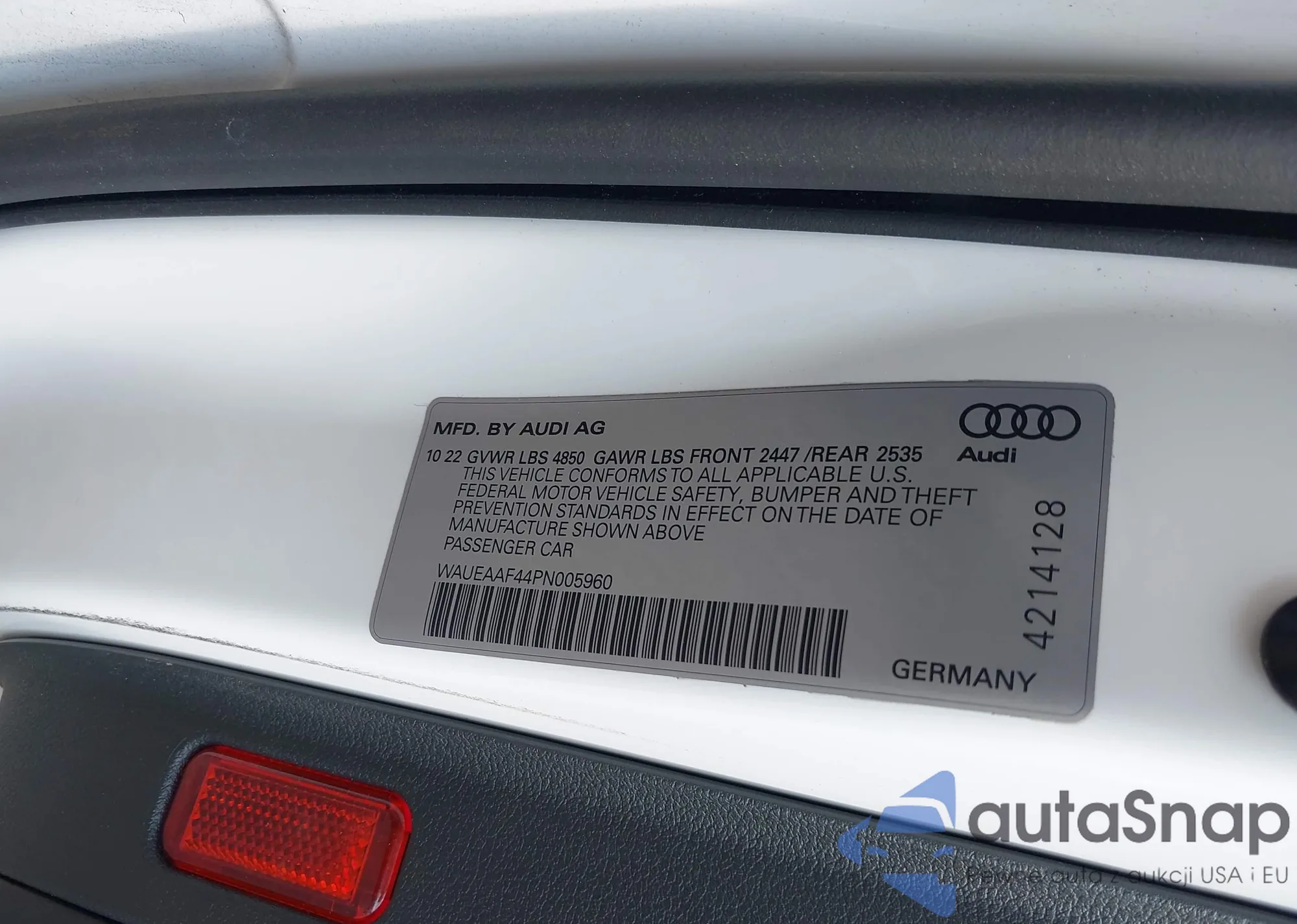 LOT: 43223068 VIN: WAUEAAF44PN005960