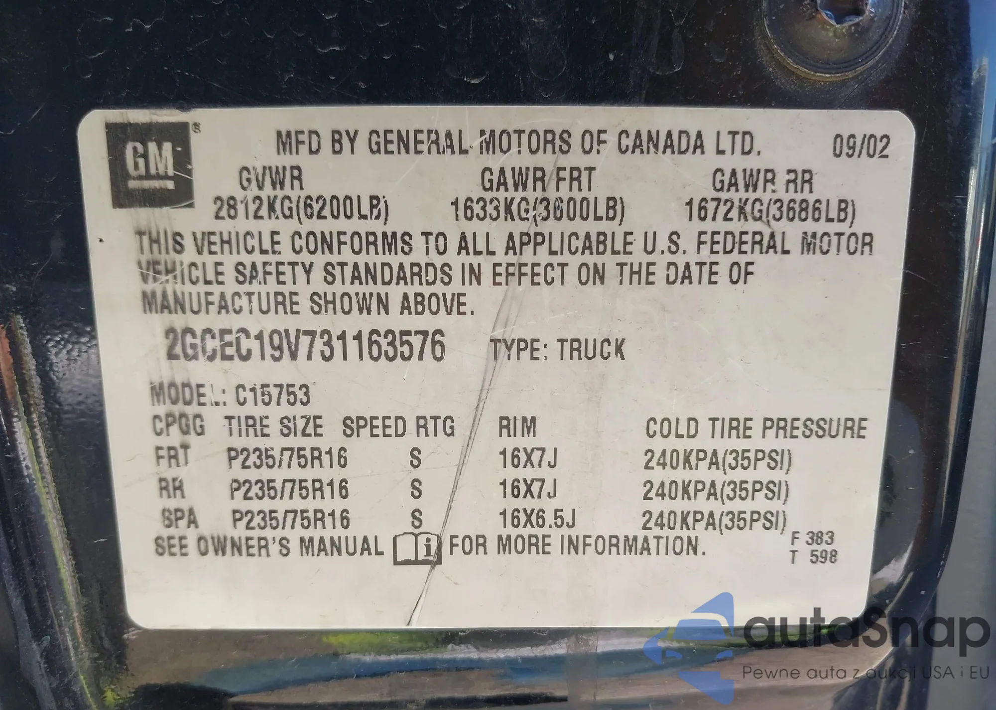 • VIN 2GCEC19V731163576