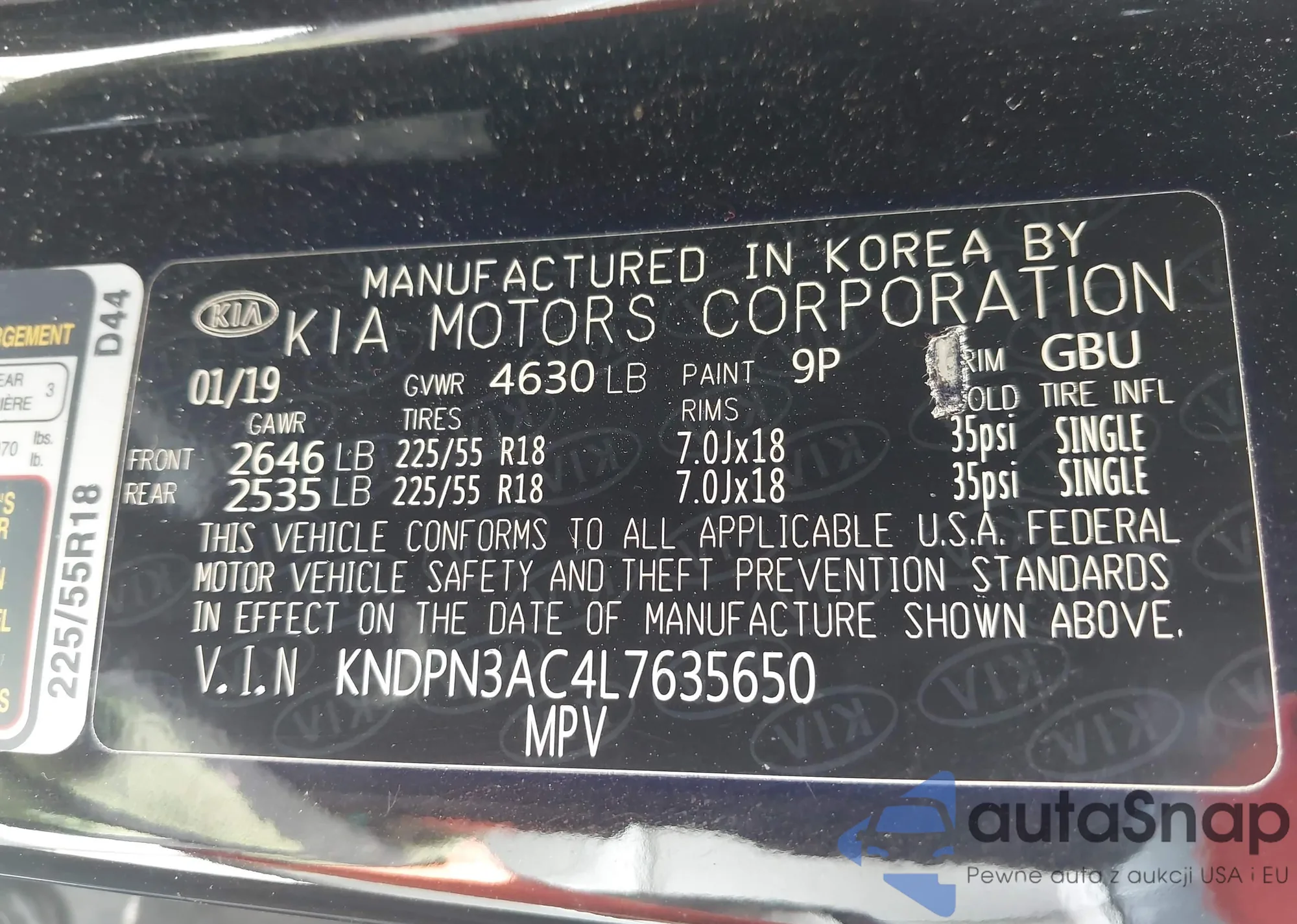 • VIN KNDPN3AC4L7635650
