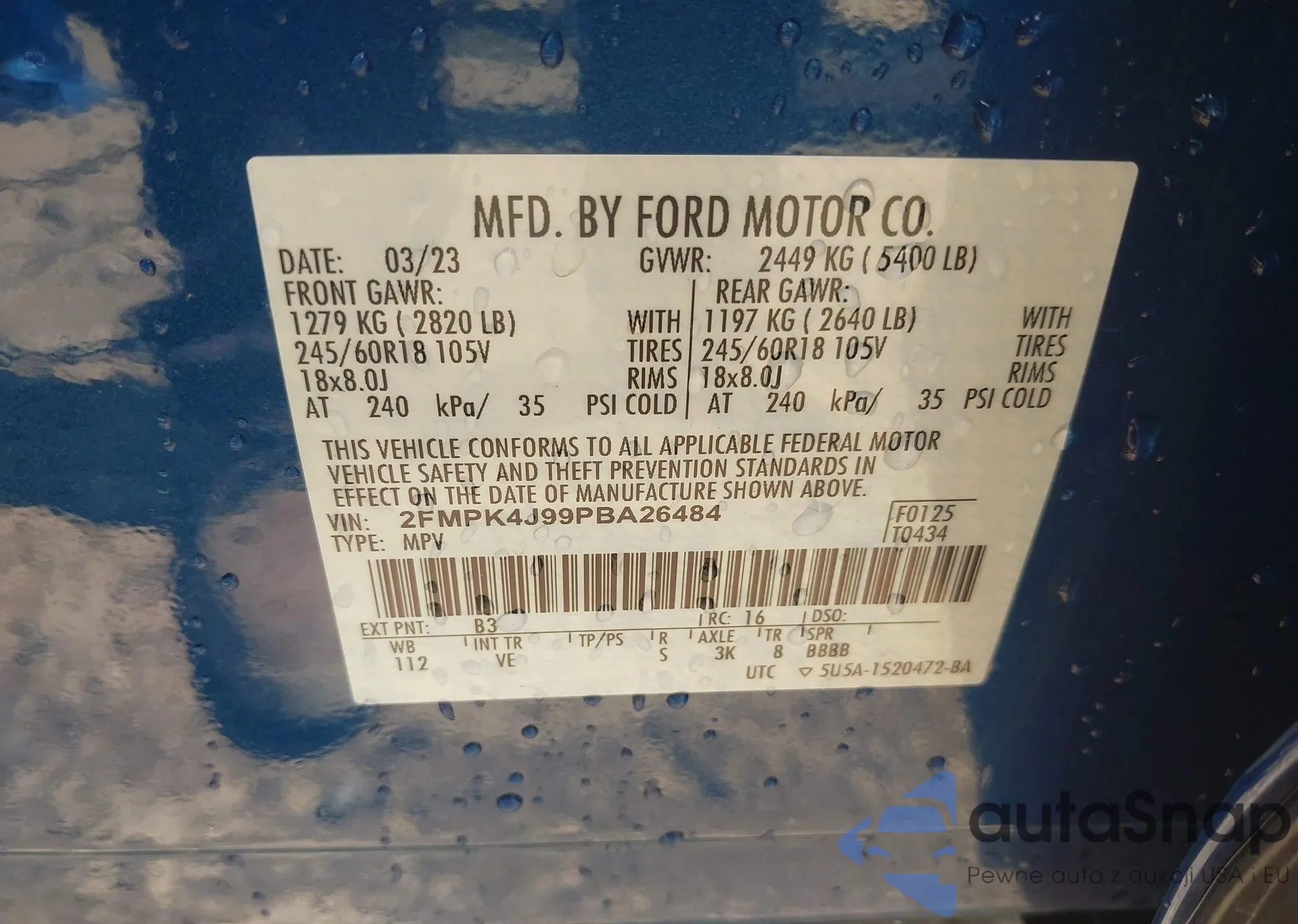 • VIN 2FMPK4J99PBA26484