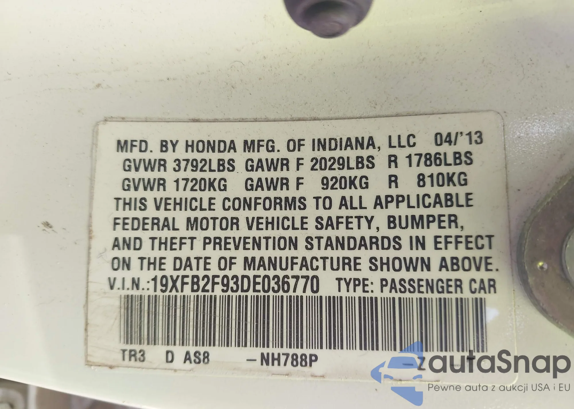 • VIN 19XFB2F93DE036770