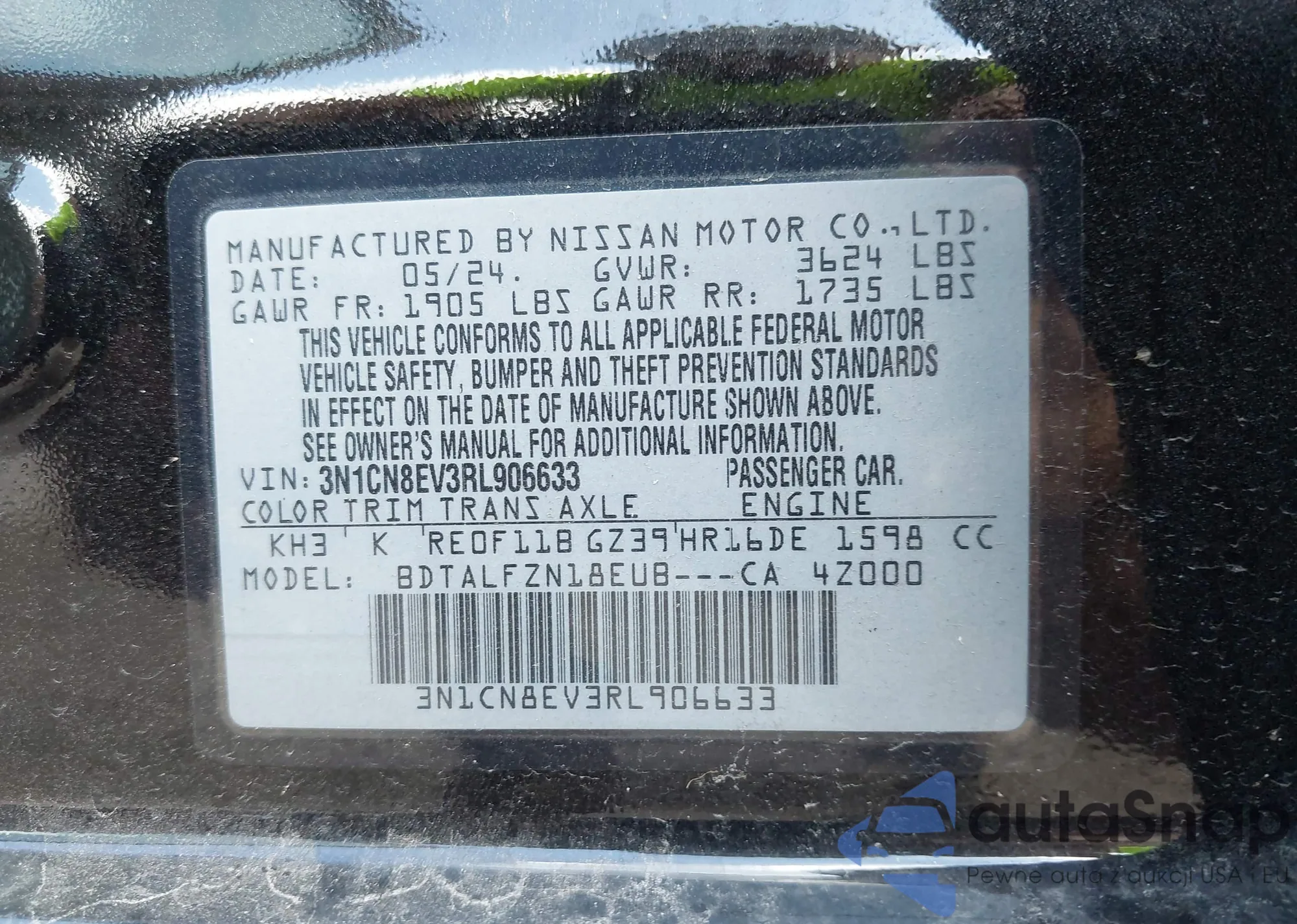 • VIN 3N1CN8EV3RL906633
