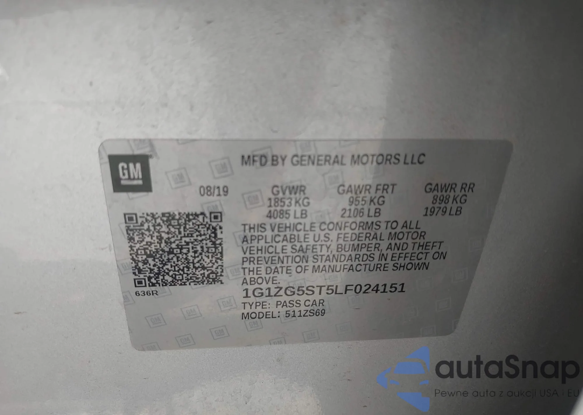 LOT: 43238296 VIN: 1G1ZD5ST0NF168069