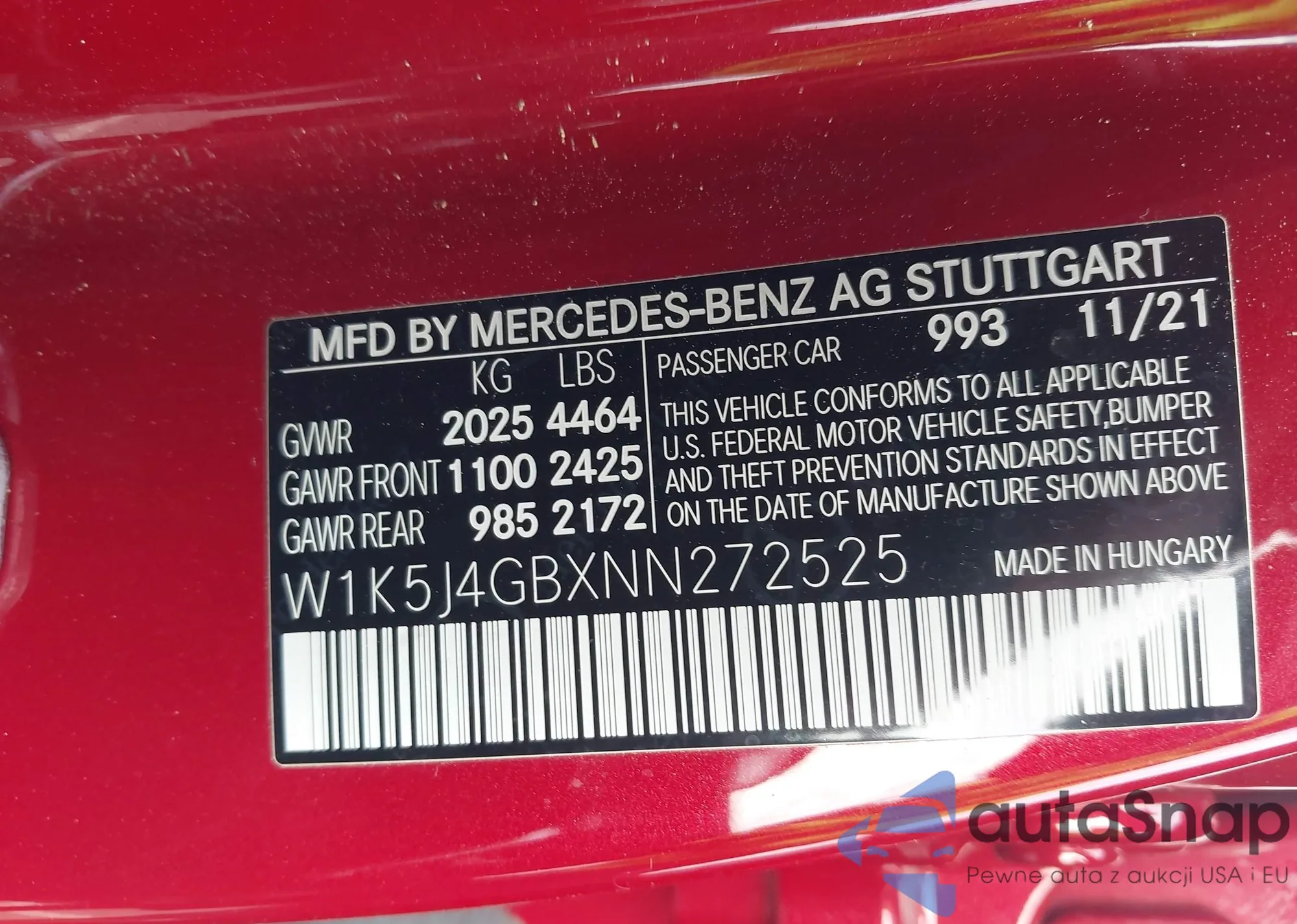 • VIN W1K5J4GBXNN272525