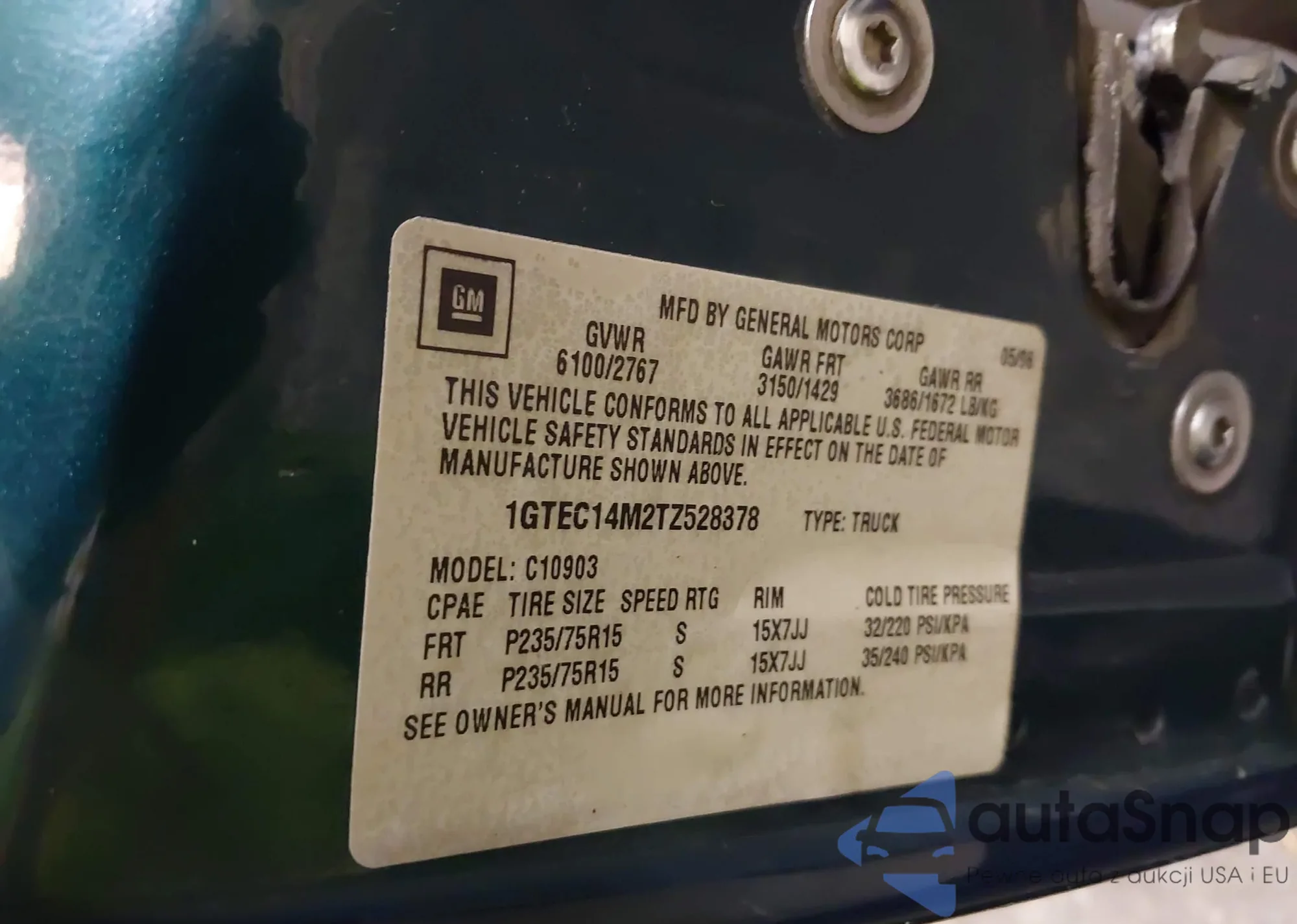 • VIN 1GTEC14M2TZ528378