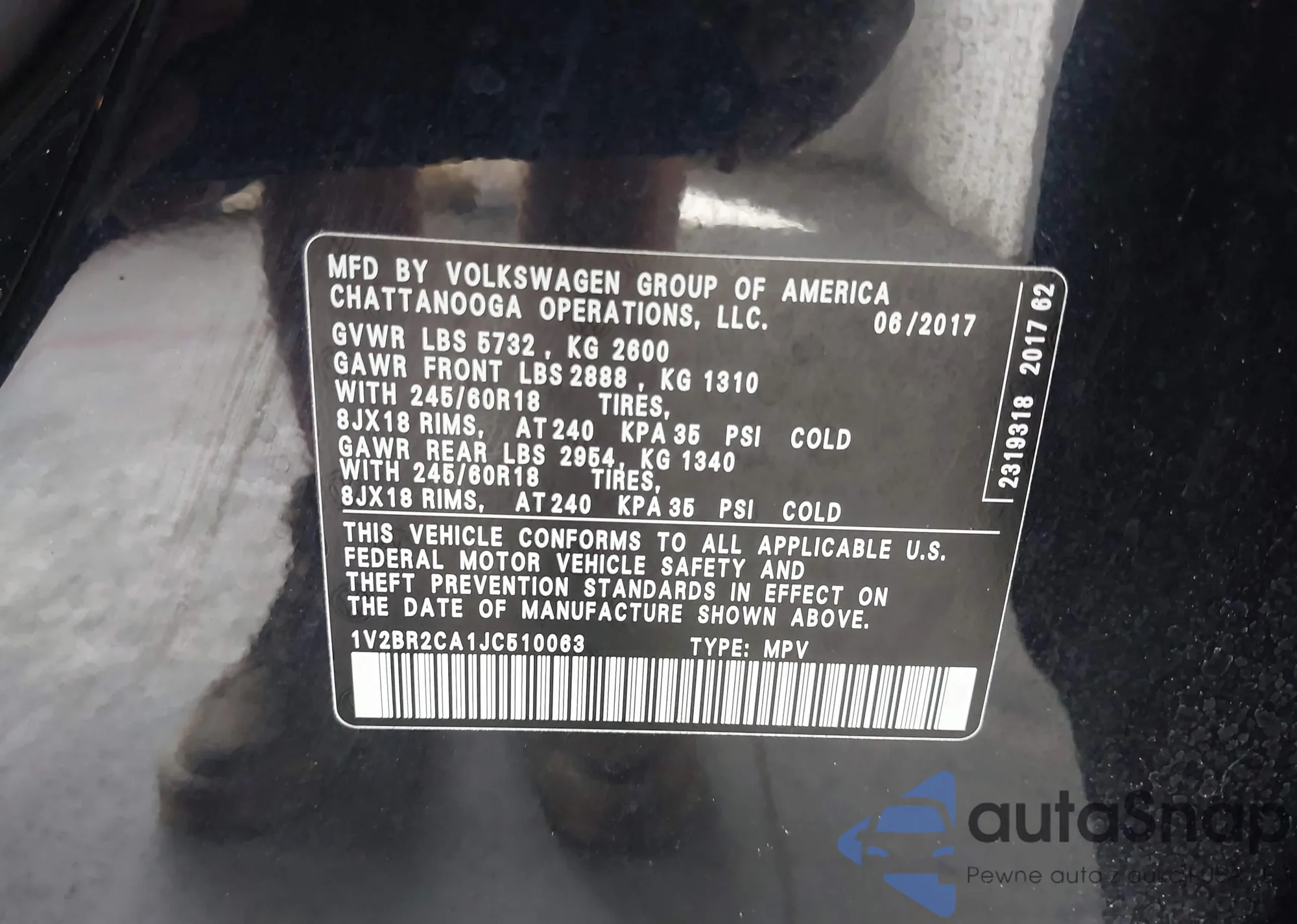 • VIN 1V2BR2CA1JC510063