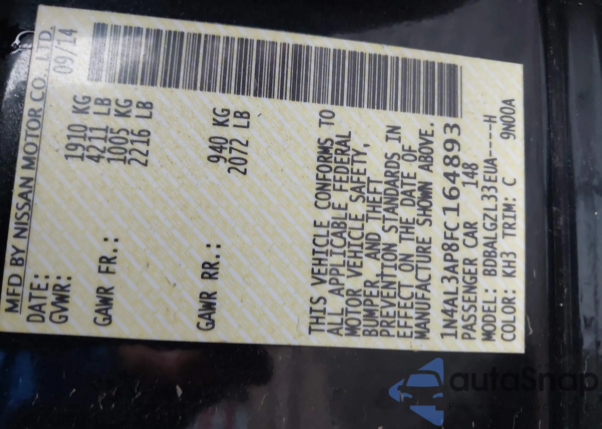 LOT: 43545097 VIN: 1N4AL3AP8FC164893