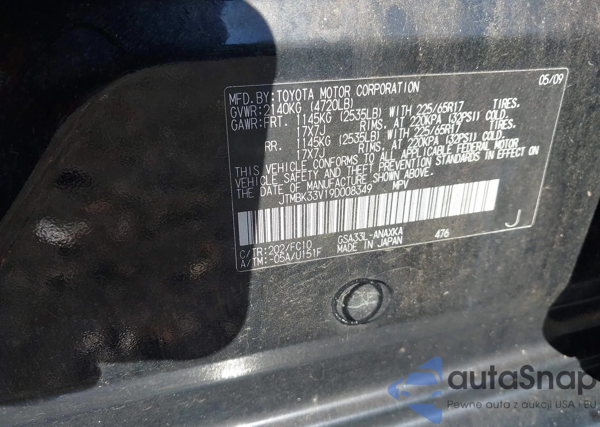 • VIN JTMBK33V19D008349