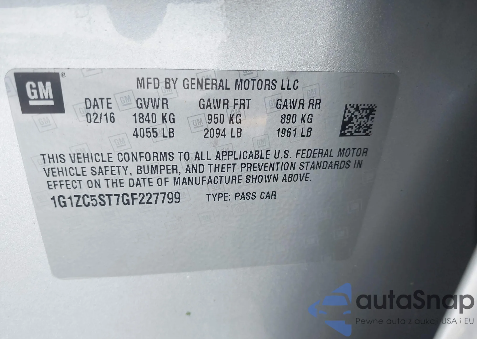 • VIN 1G1ZC5ST7GF227799