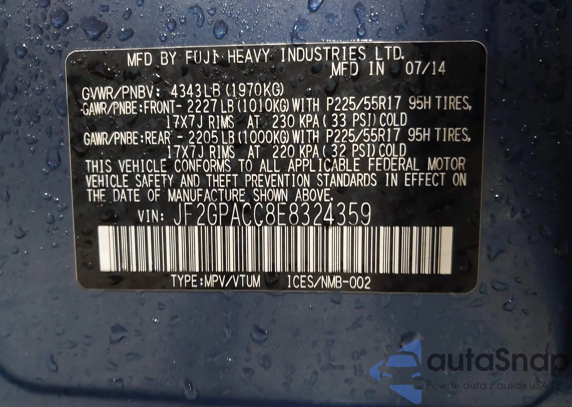 • VIN JF2GPACC8E8324359