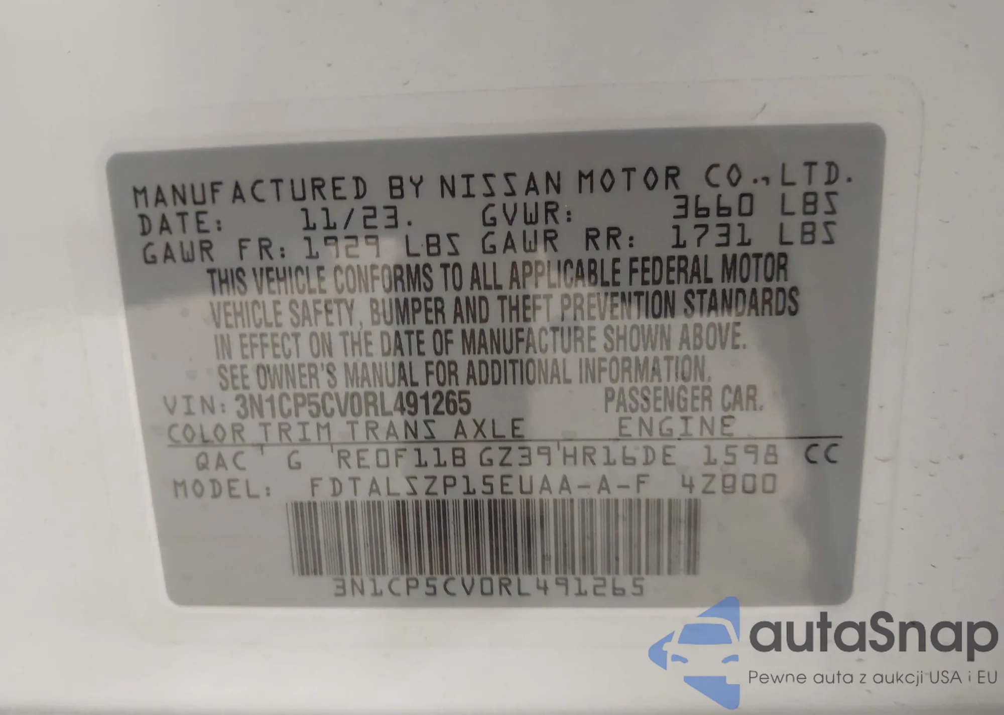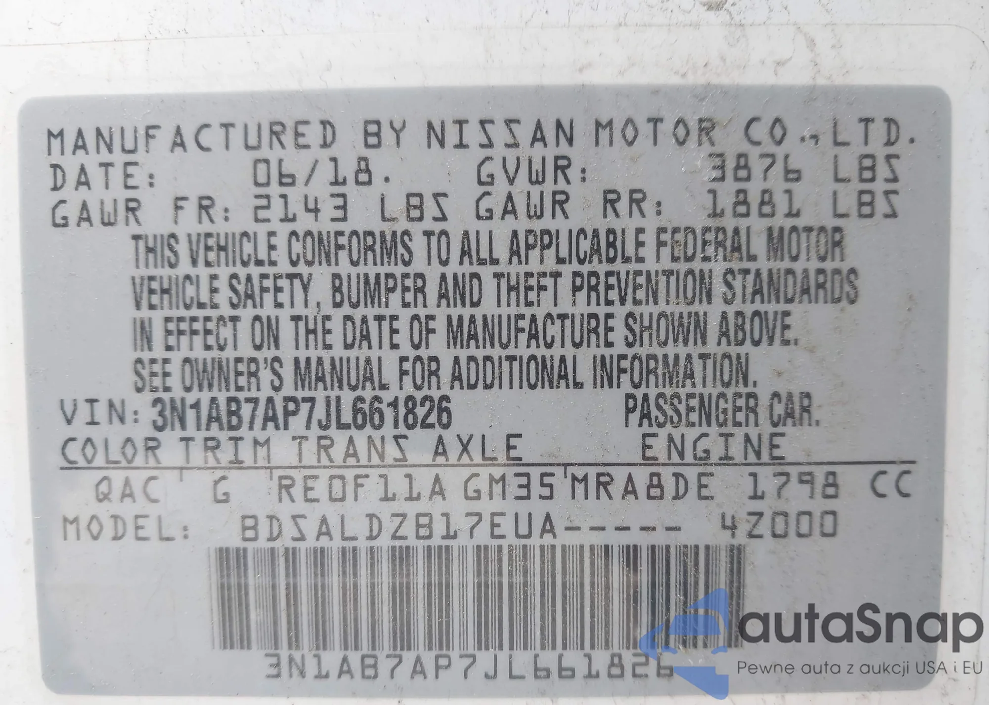 • VIN 3N1AB7AP7JL661826