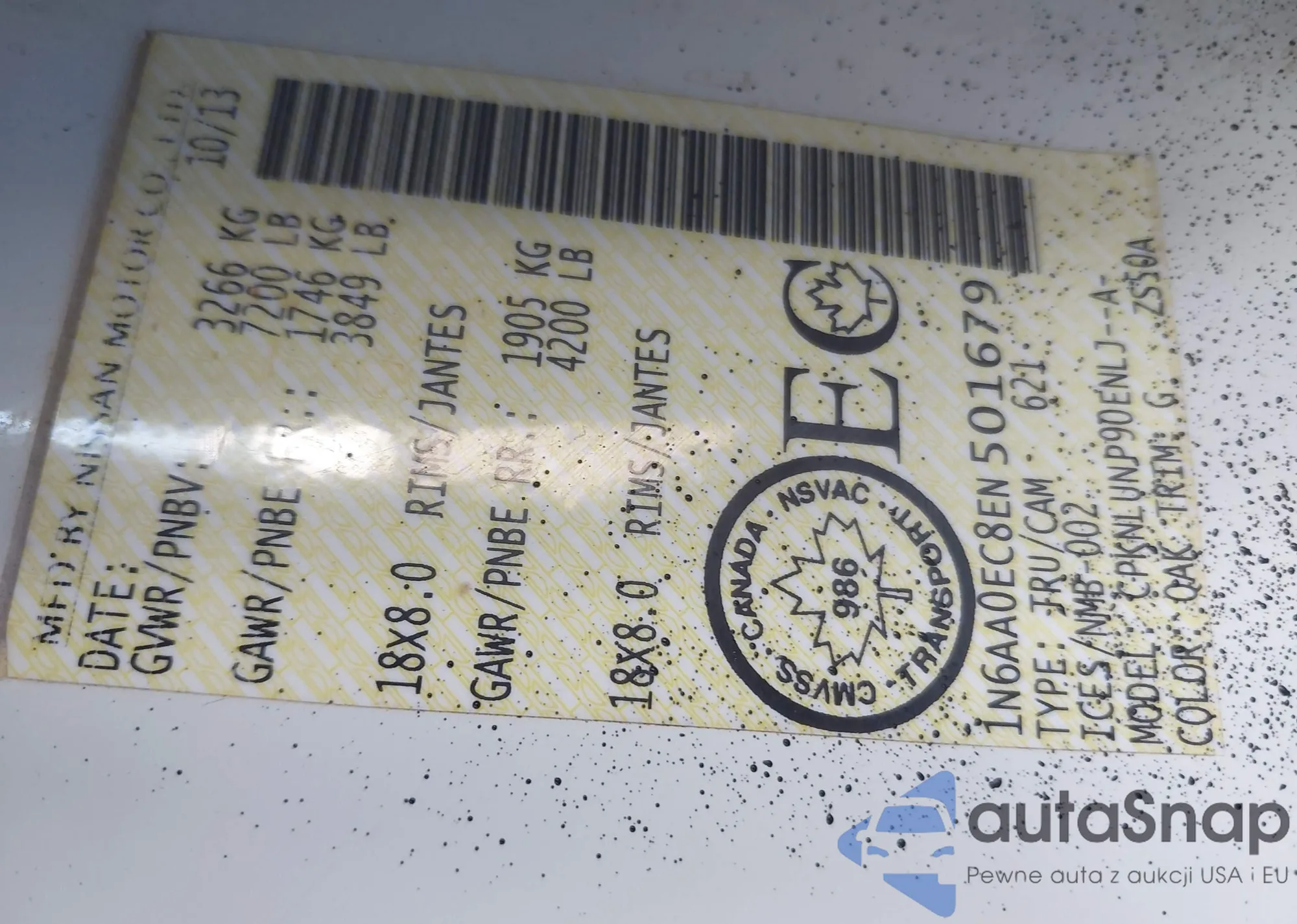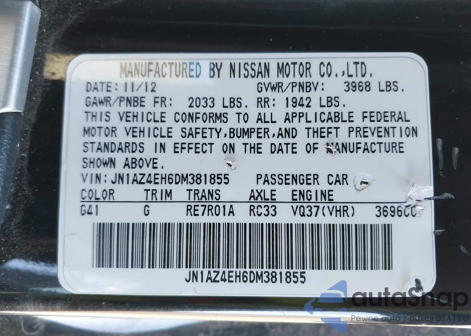 LOT: 43362860 VIN: JN1AZ4EH6DM381855