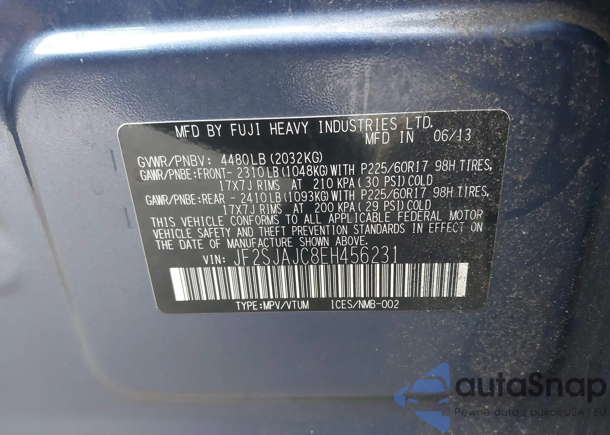 • VIN 5J8TB4H58DL018329