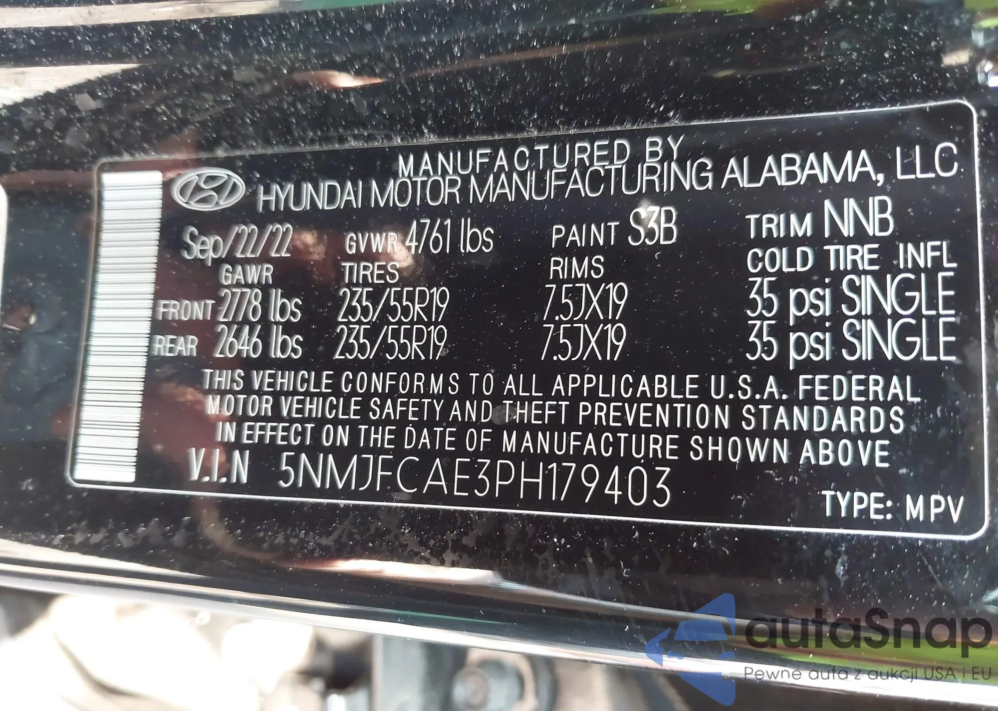 • VIN 5NMJFCAE3PH179403