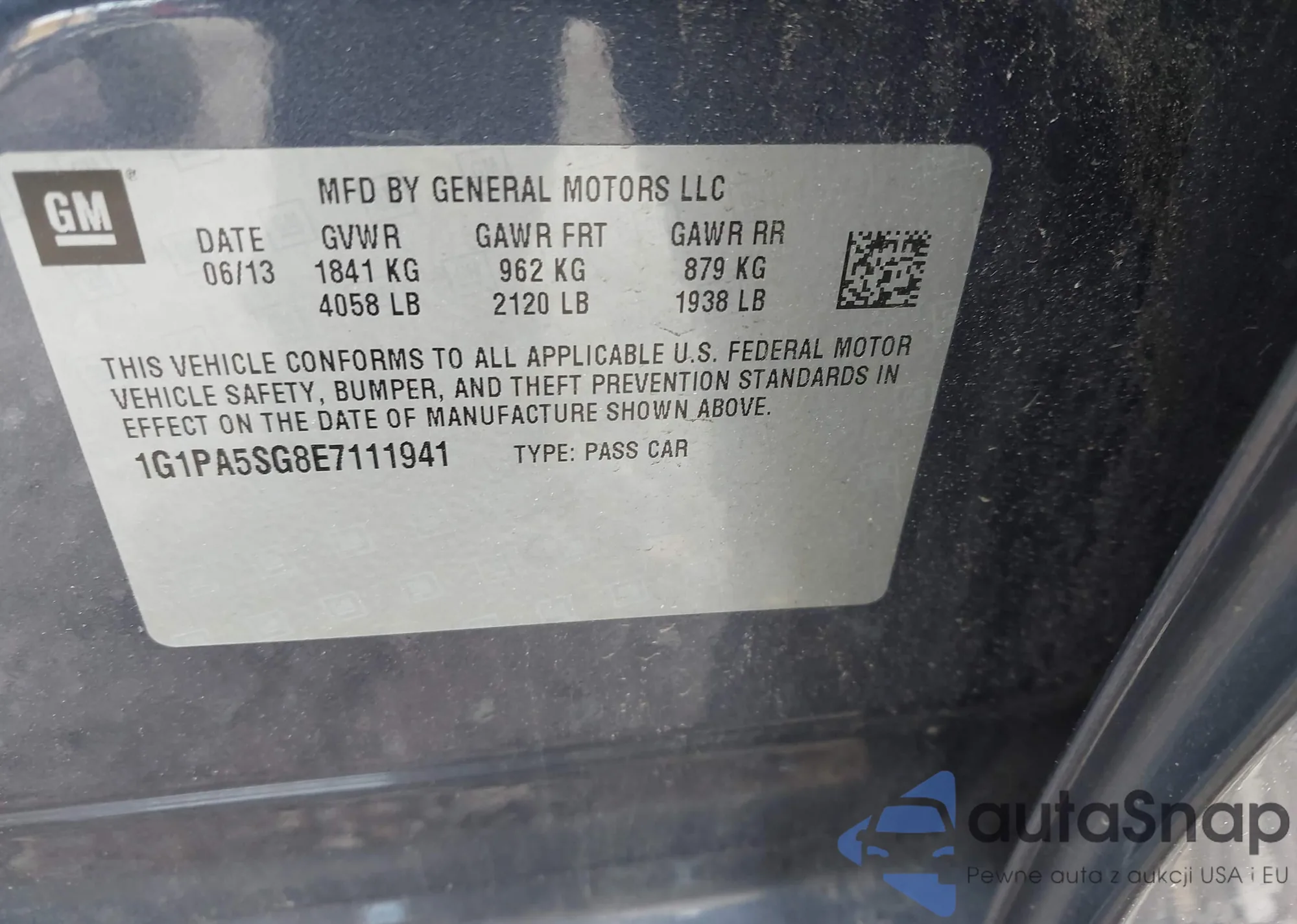 LOT: 42516926 VIN: 1G1PA5SG8E7111941