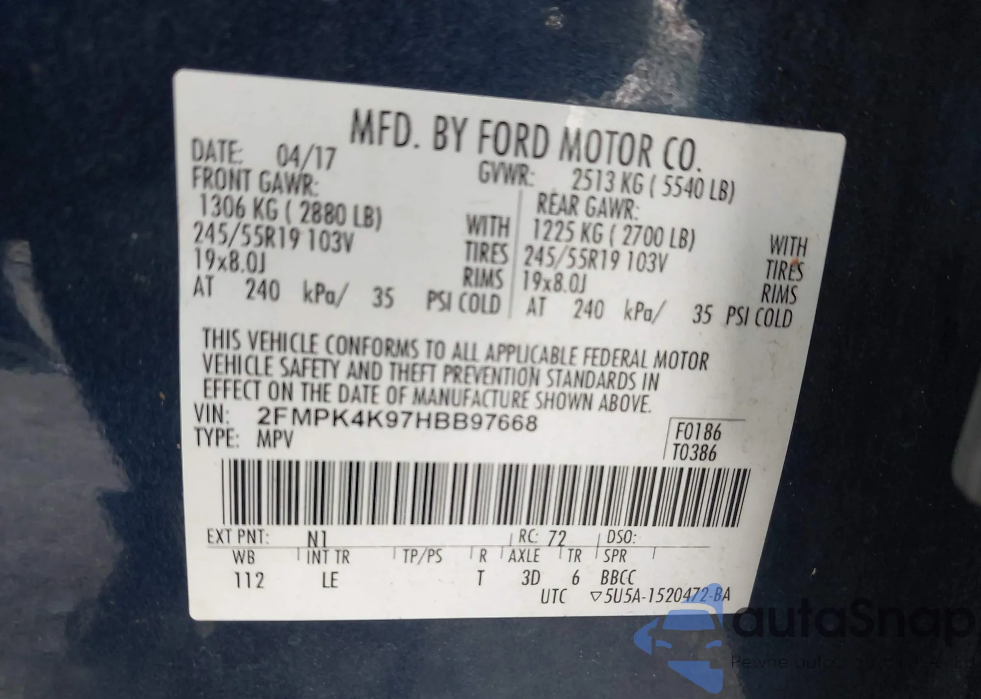 • VIN 2FMPK4K97HBB97668