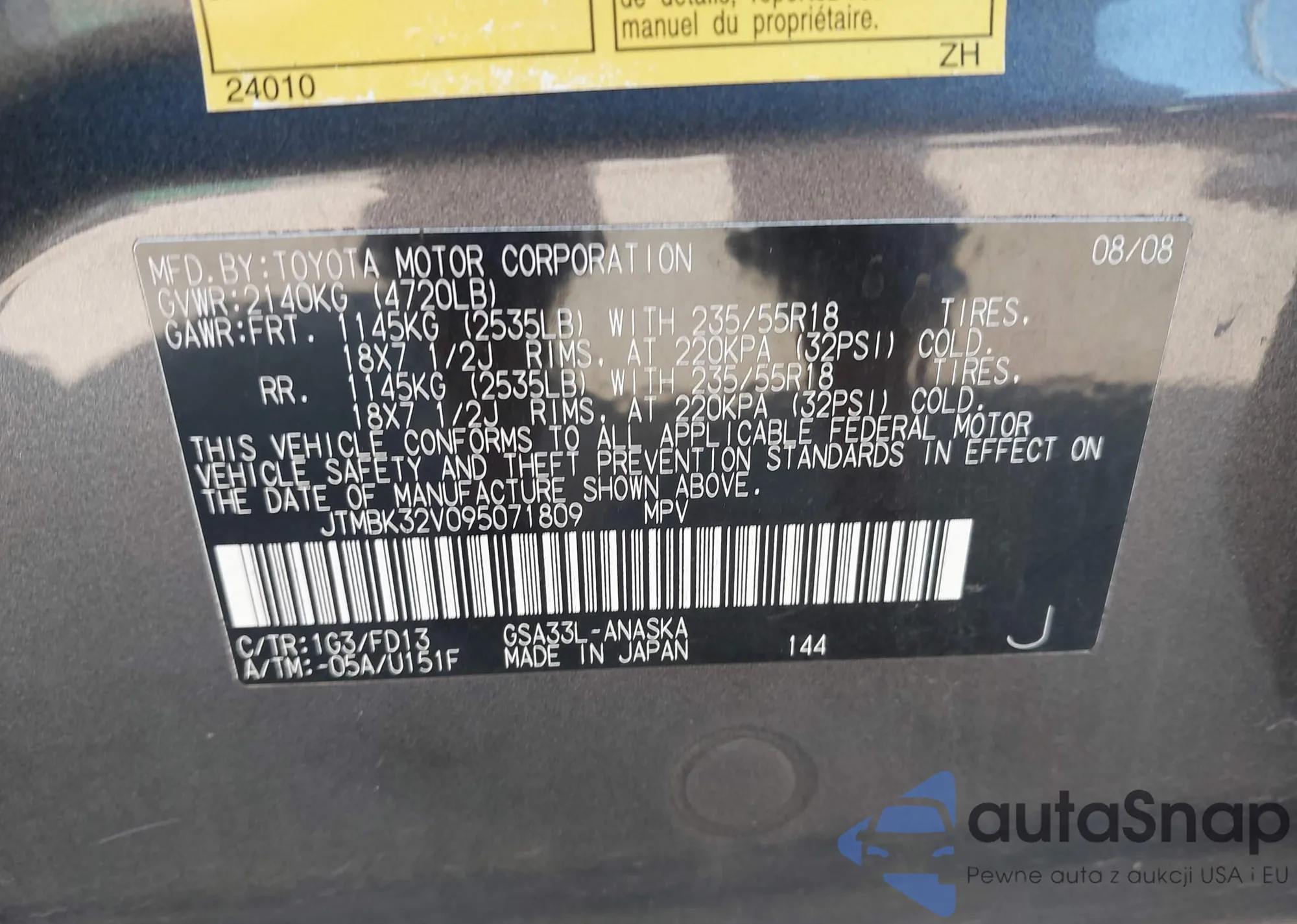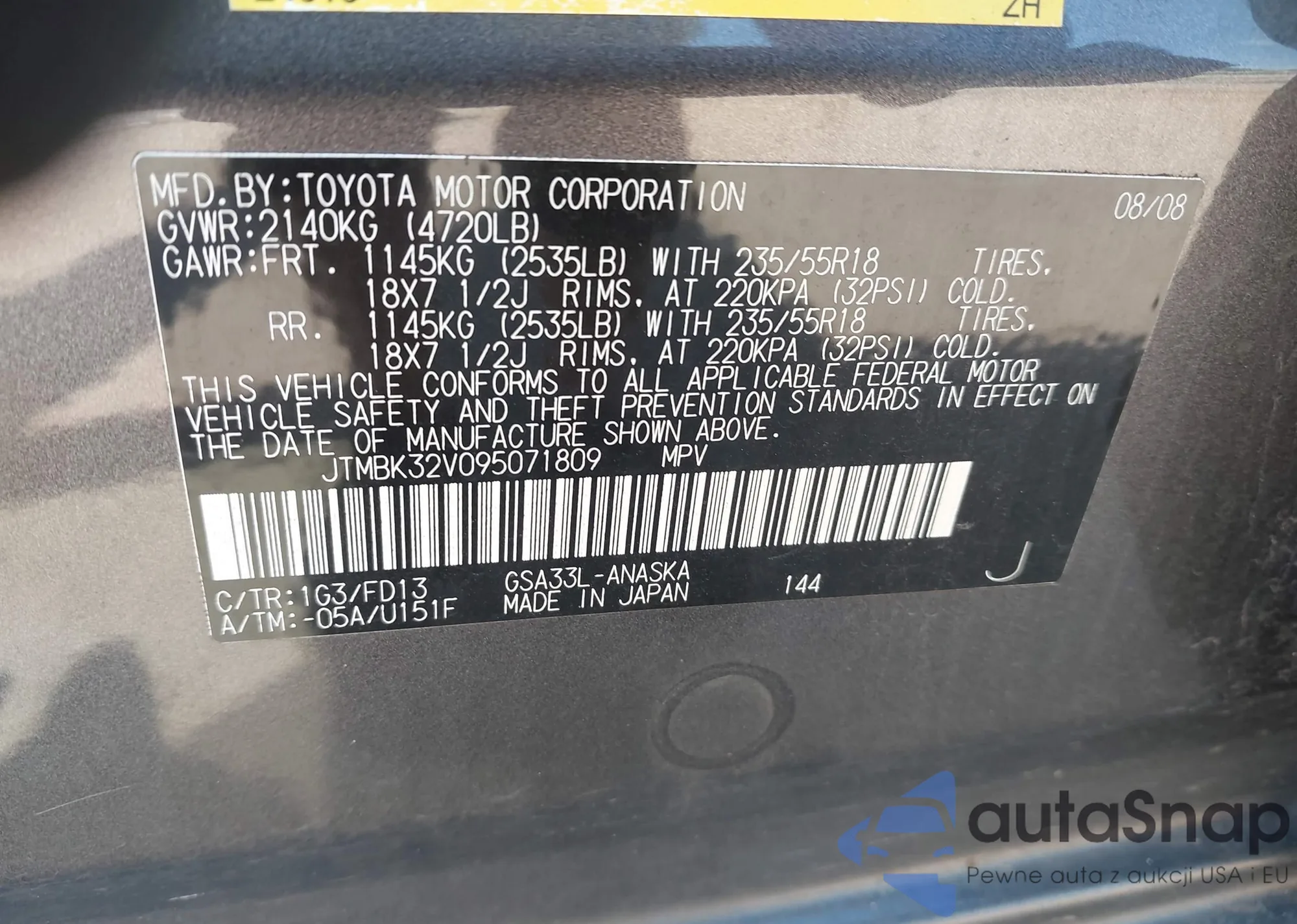 LOT: 43203097 VIN: JTMBK32V095071809