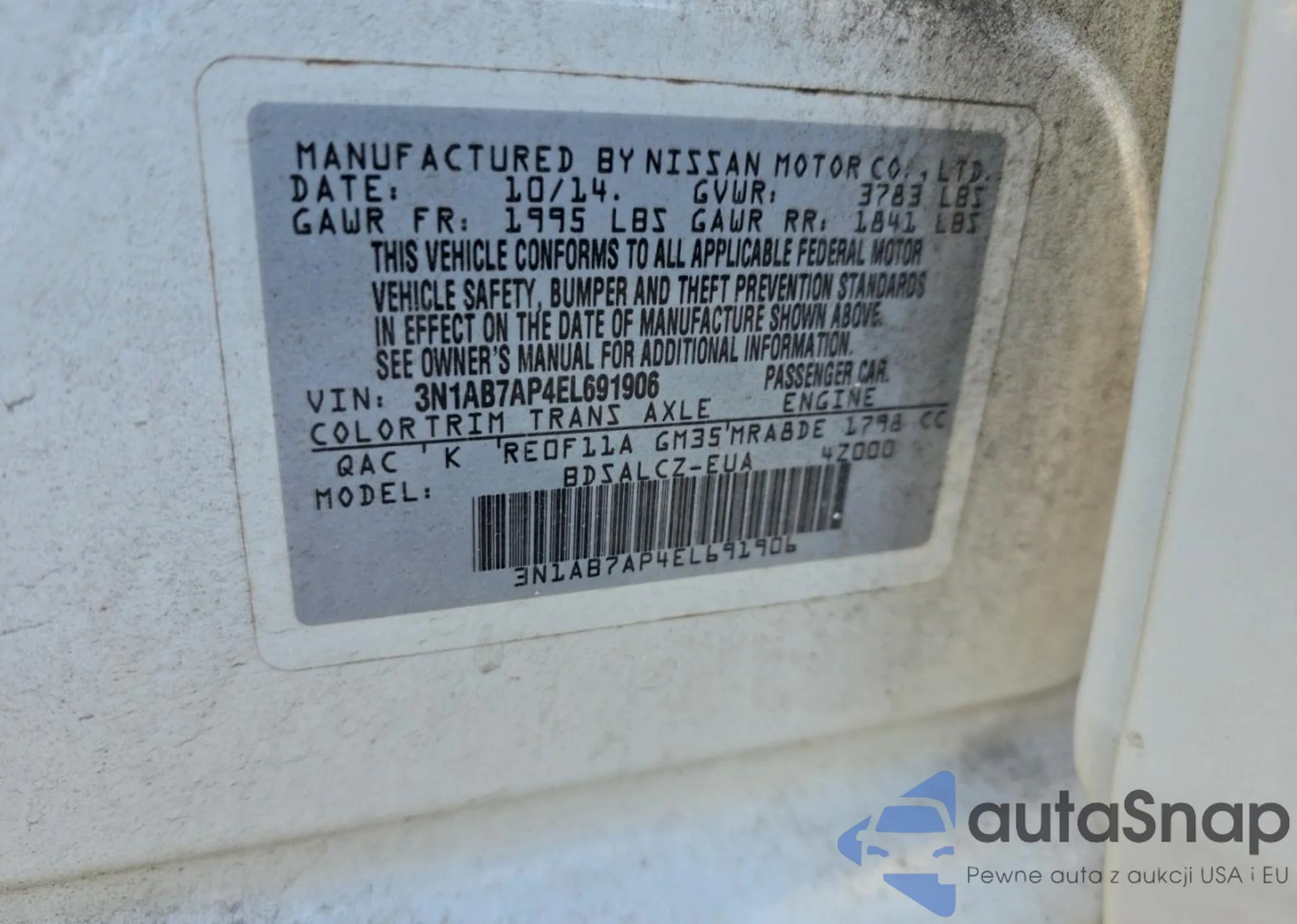 • VIN 3N1AB7AP4EL691906
