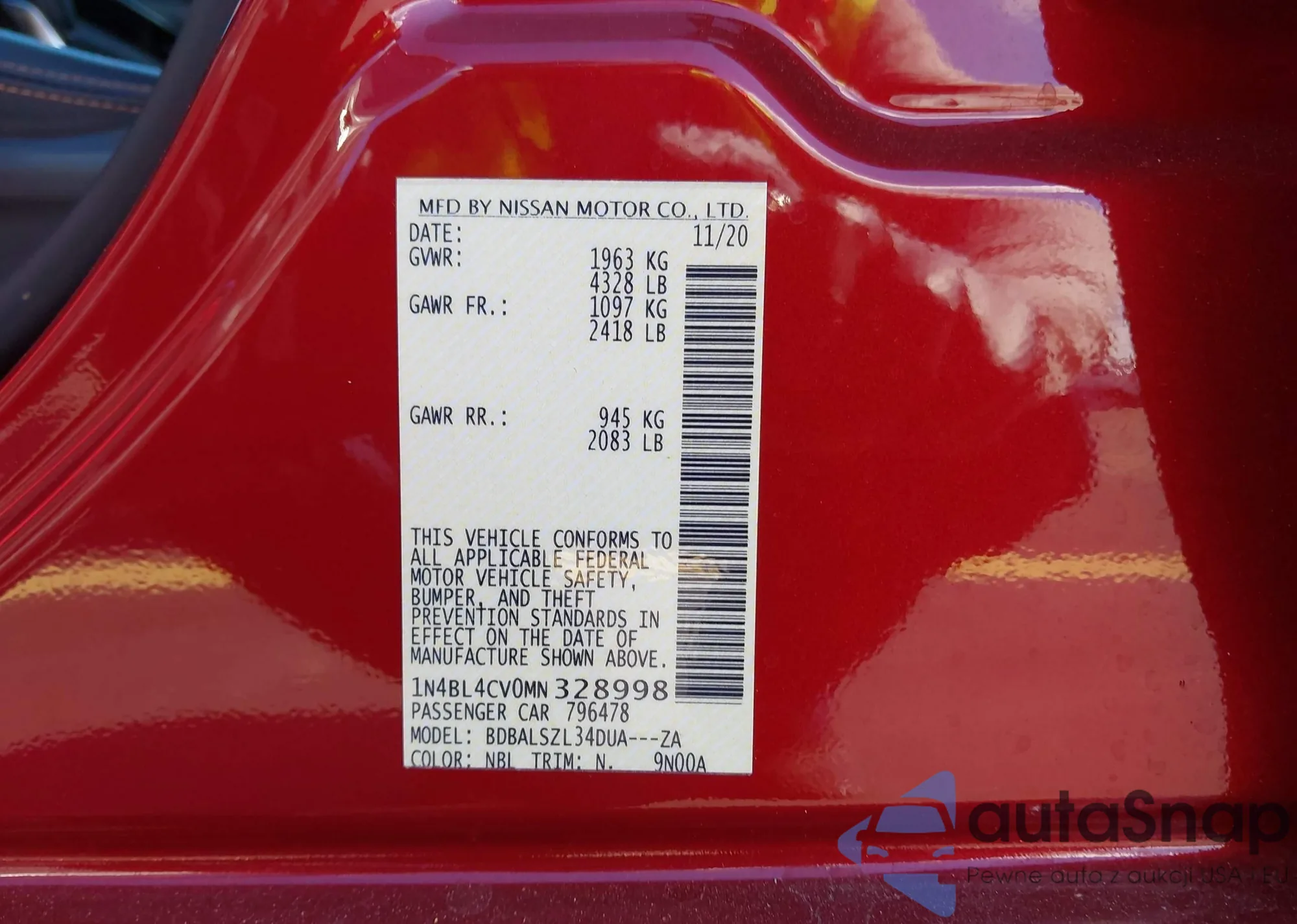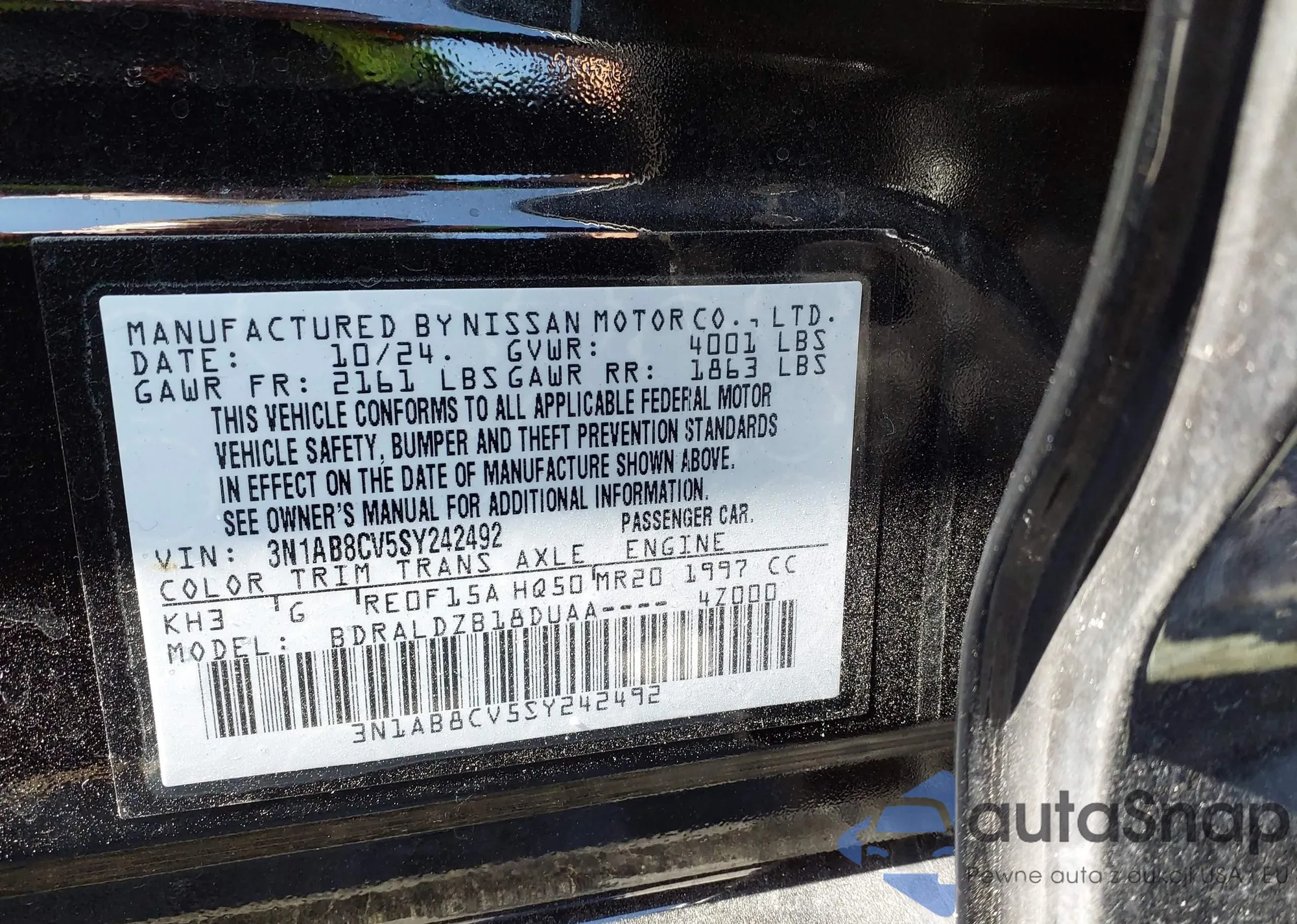 • VIN 3N1AB8CV5SY242492