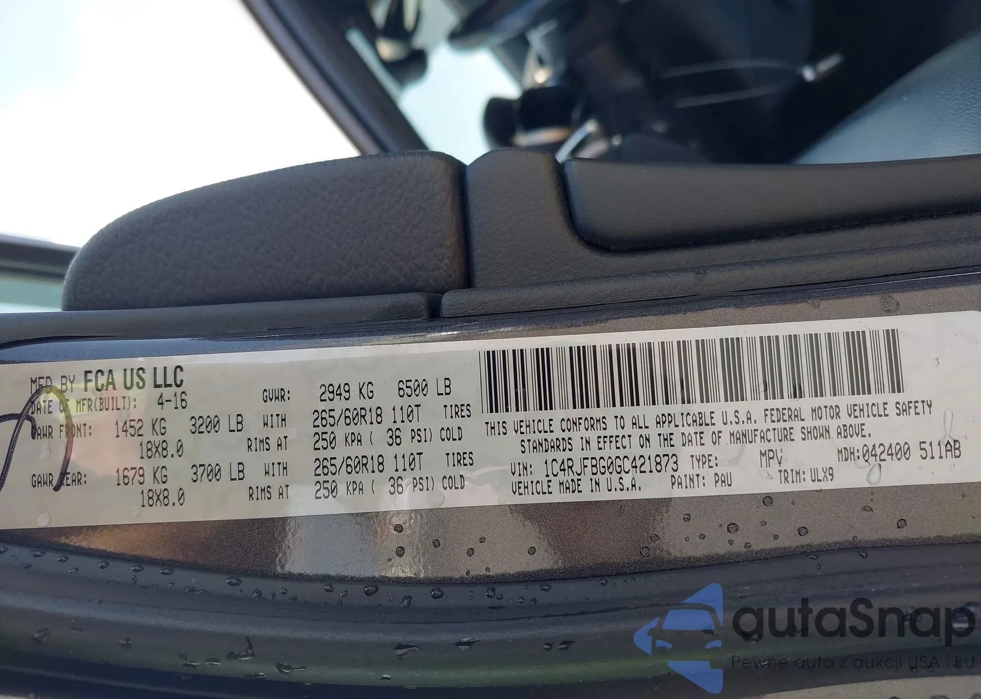 • VIN 1C4RJFBG0GC421873