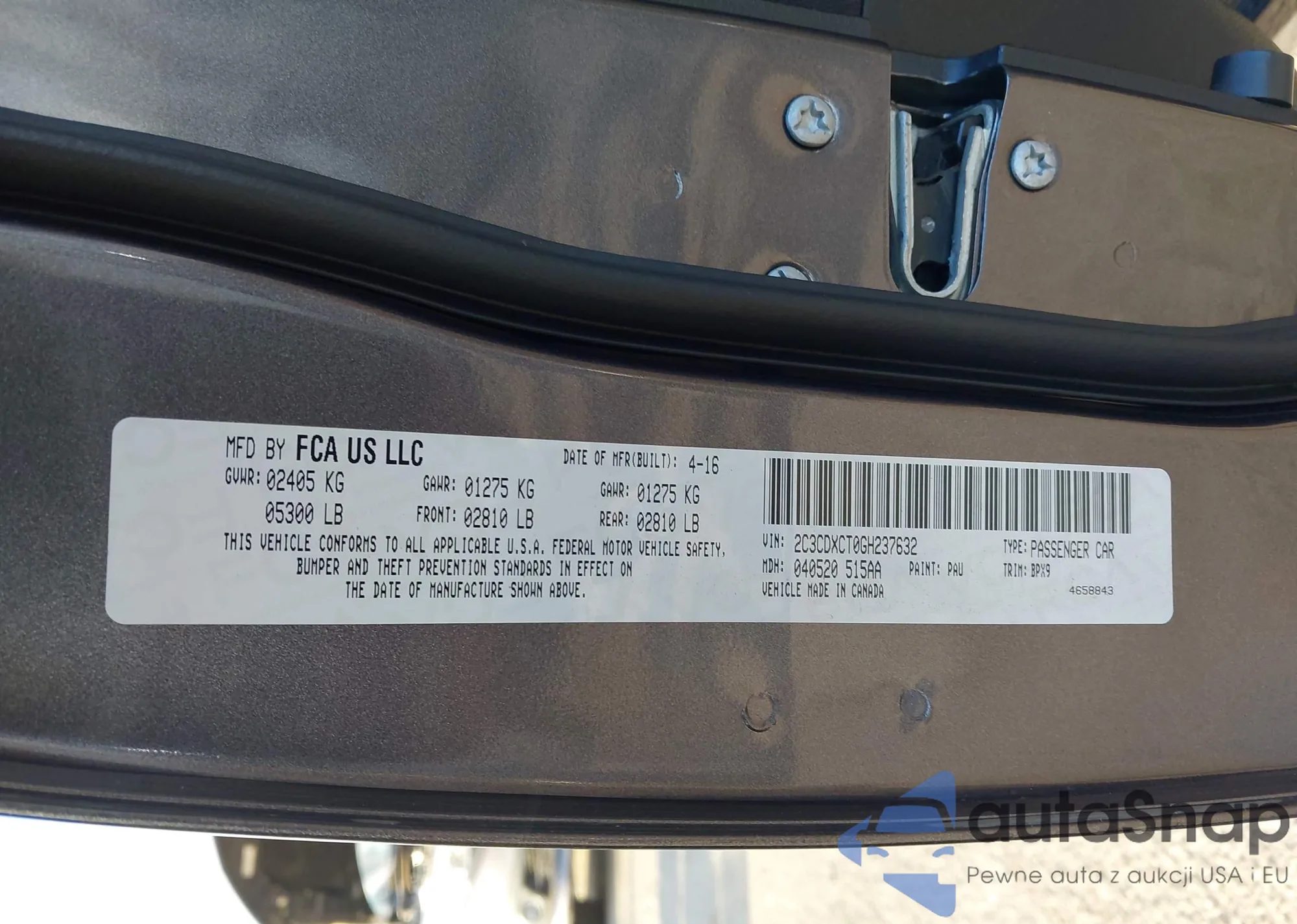 • VIN 2C3CDXCT0GH237632