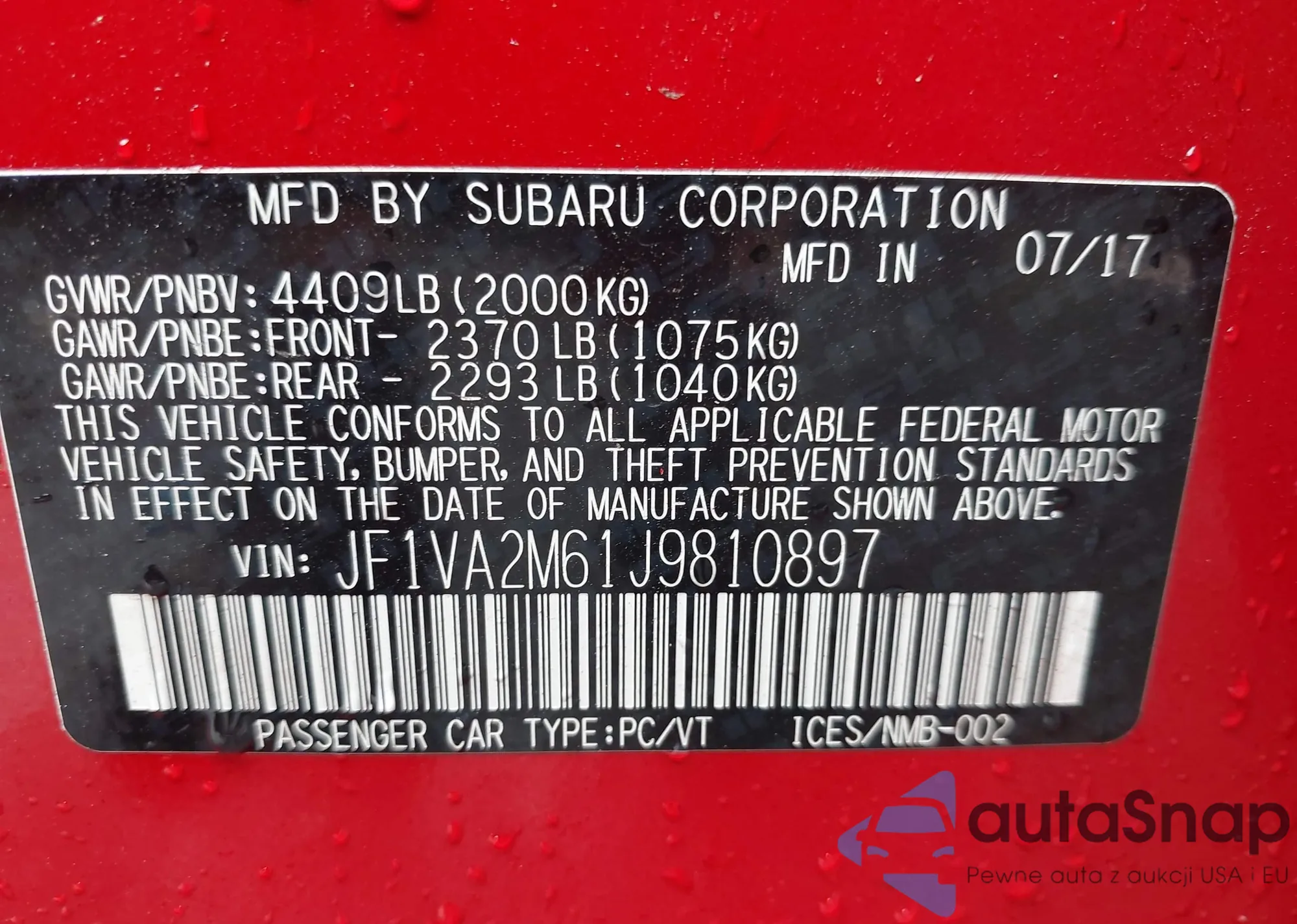 LOT: 42898017 VIN: JF1VA2M61J9810897