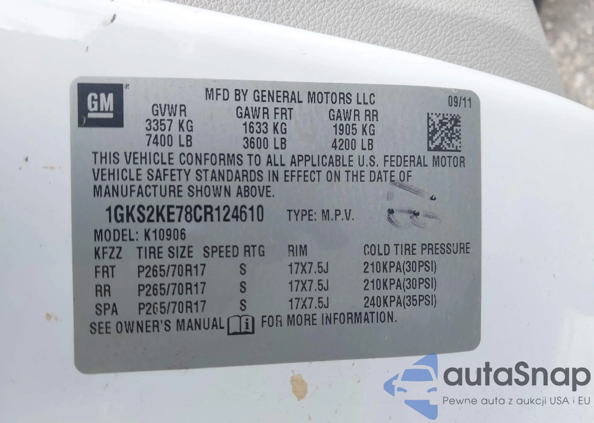 • VIN 3GCPABEK3RG238872
