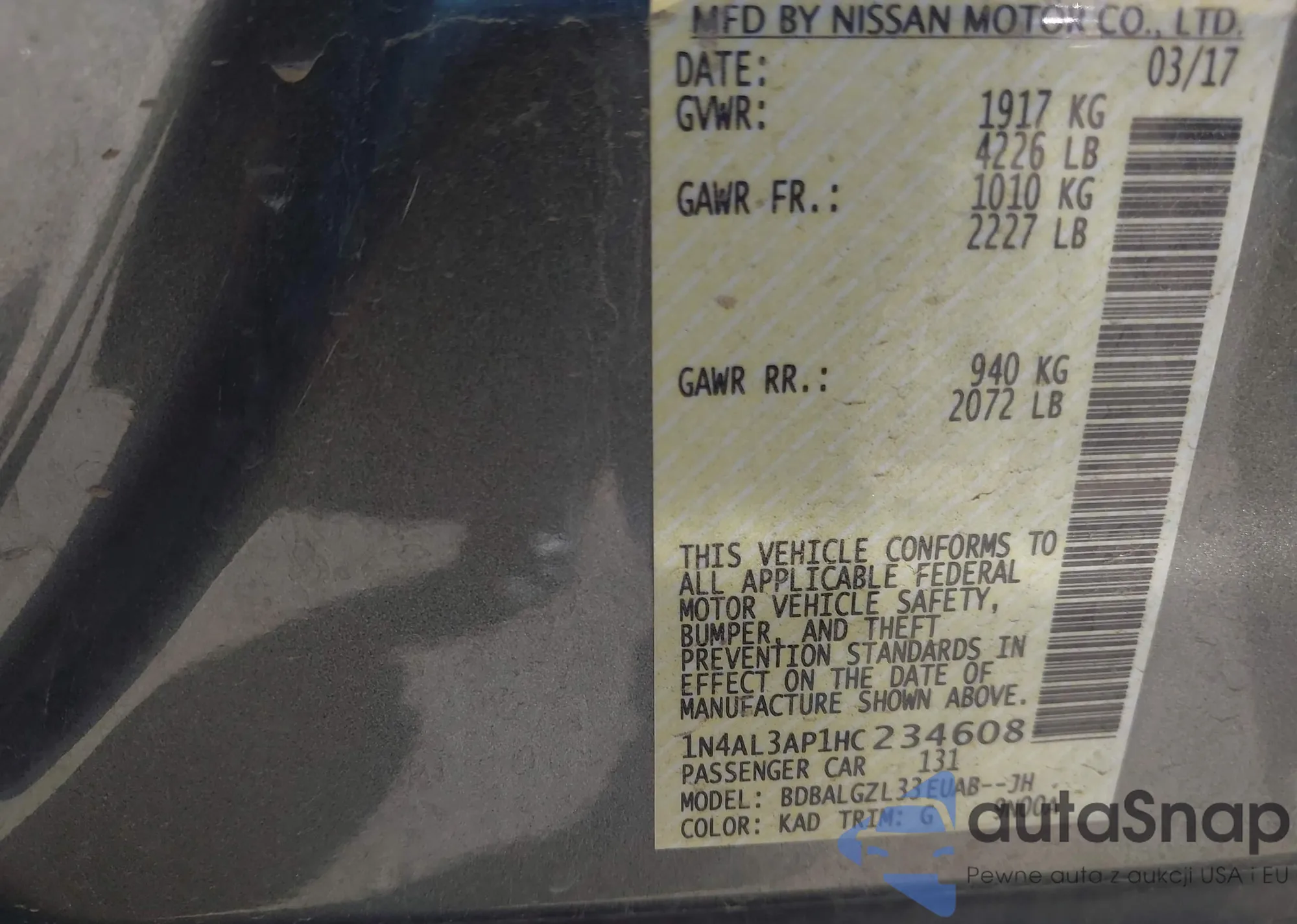 LOT: 43394829 VIN: 1N4AL3AP1HC234608