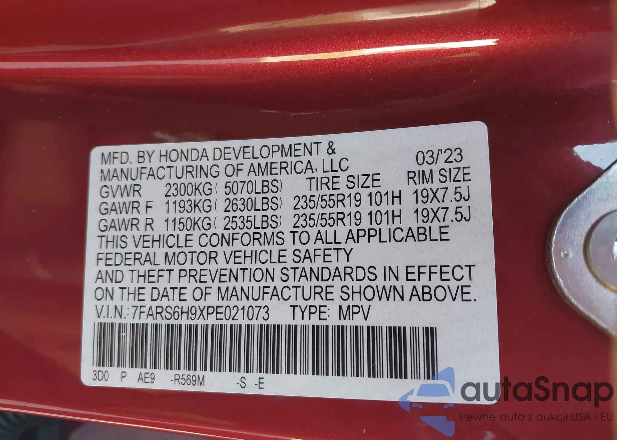 • VIN 3VVCB7AX1PM015241