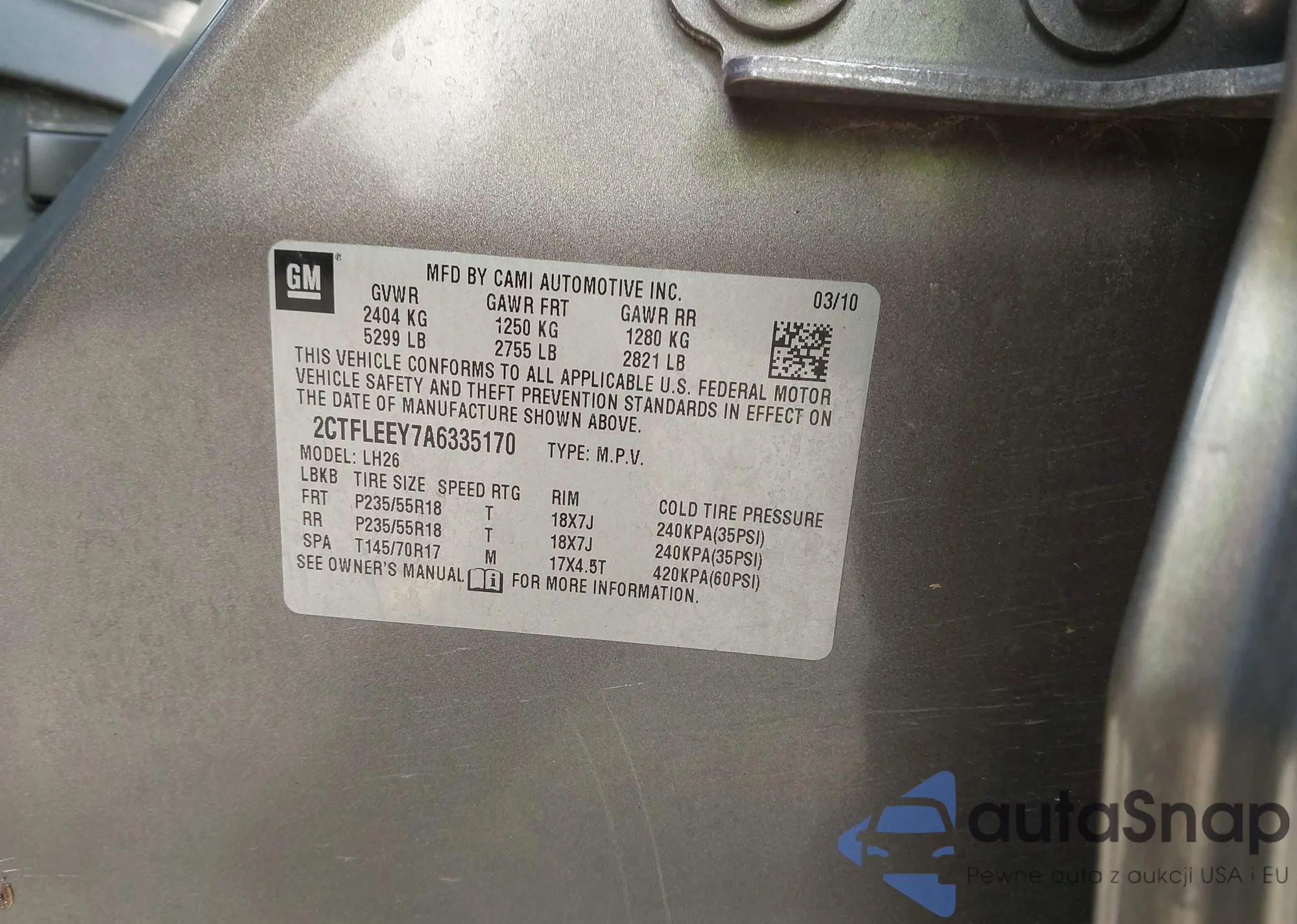 • VIN 2CTFLEEY7A6335170