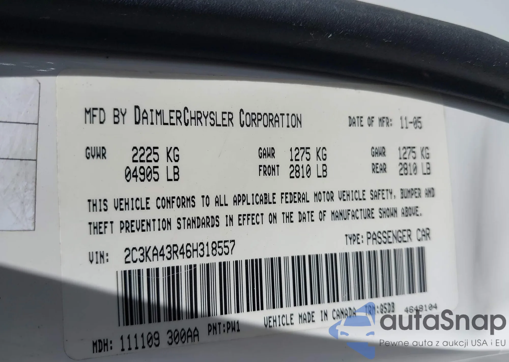 LOT: 43544106 VIN: 1HGFA16536L083075