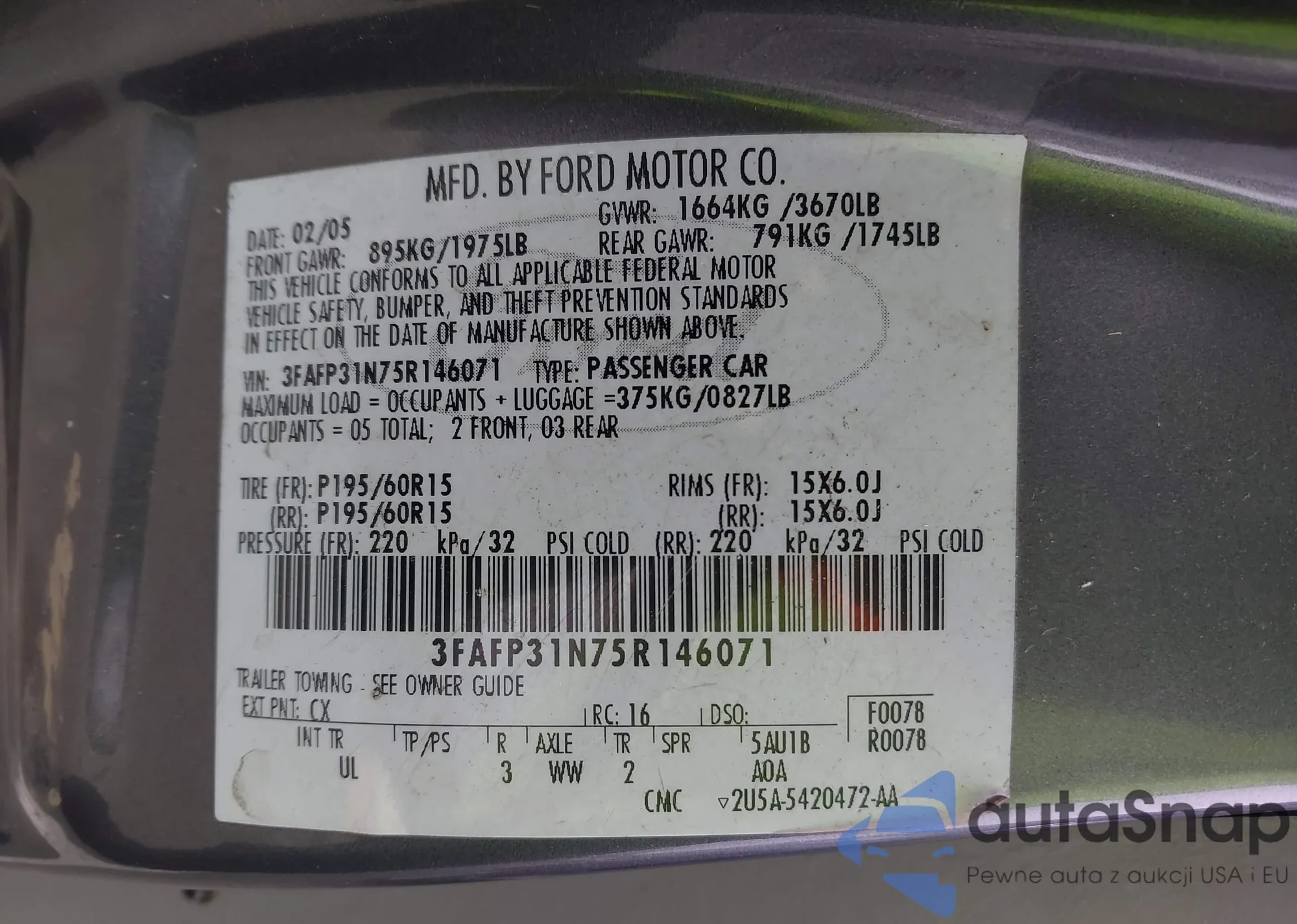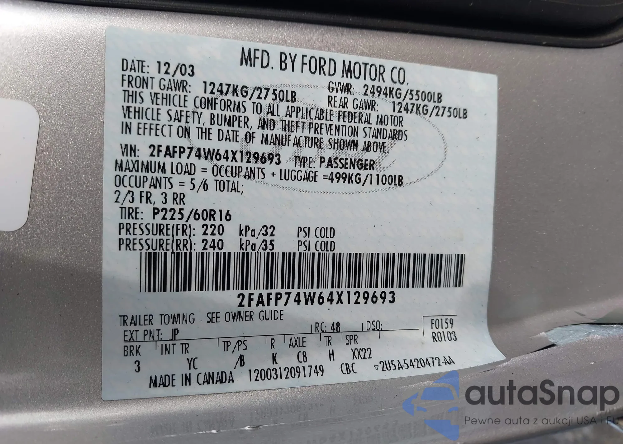 LOT: 43652968 VIN: 2FAFP74W64X129693