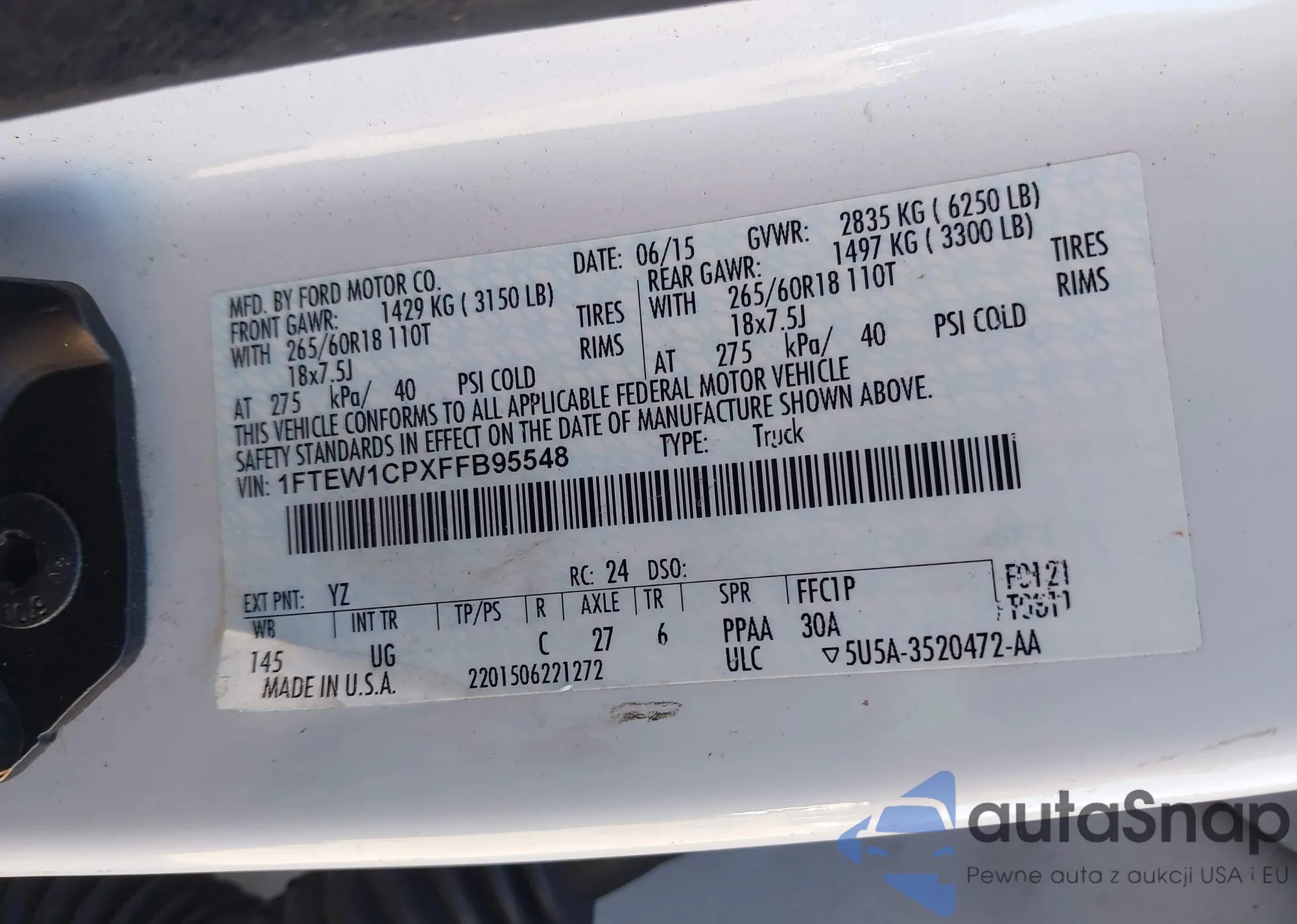 LOT: 43645175 VIN: 1FTEW1CPXFFB95548