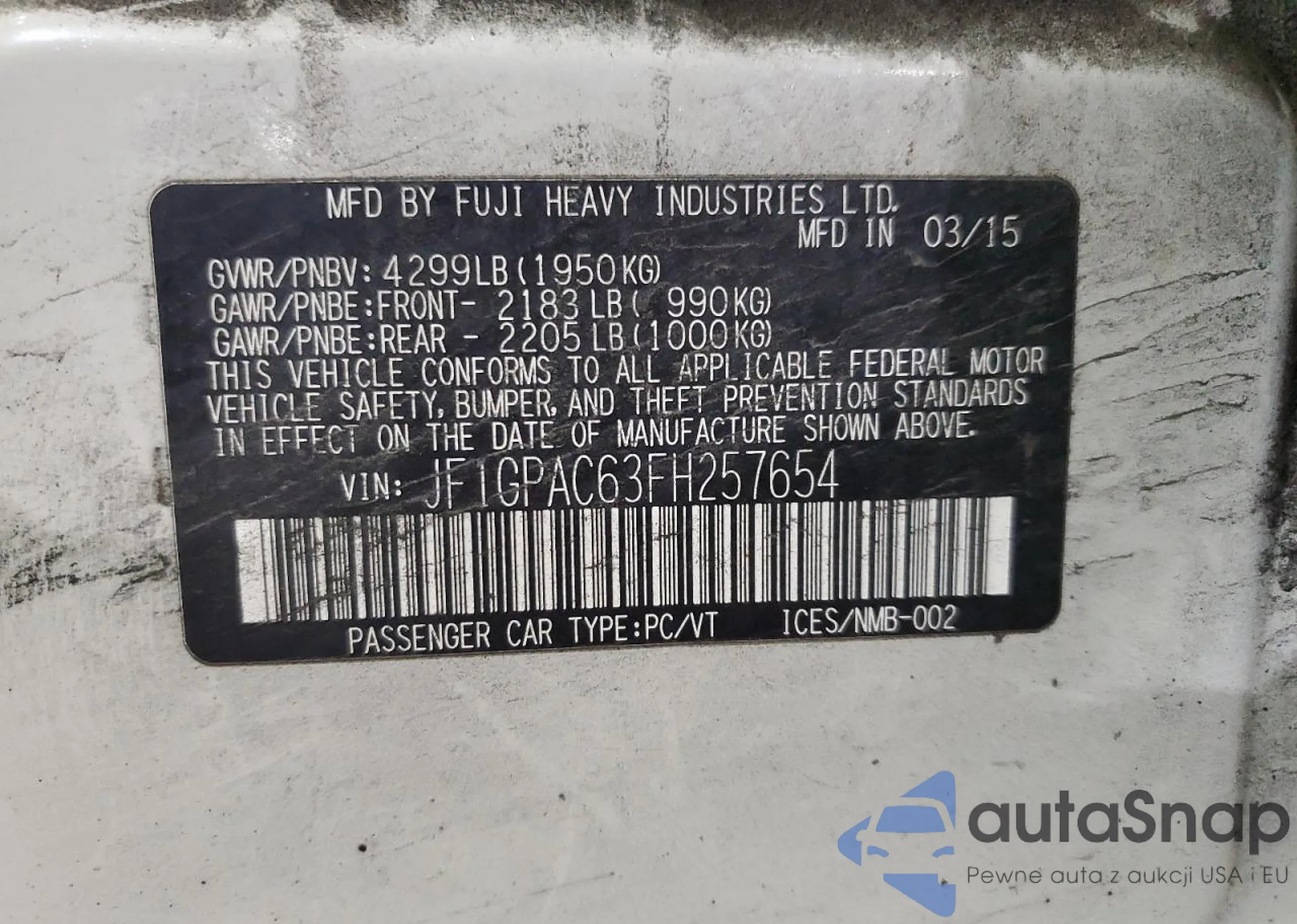LOT: 92260115 VIN: JF1GPAC63FH257654