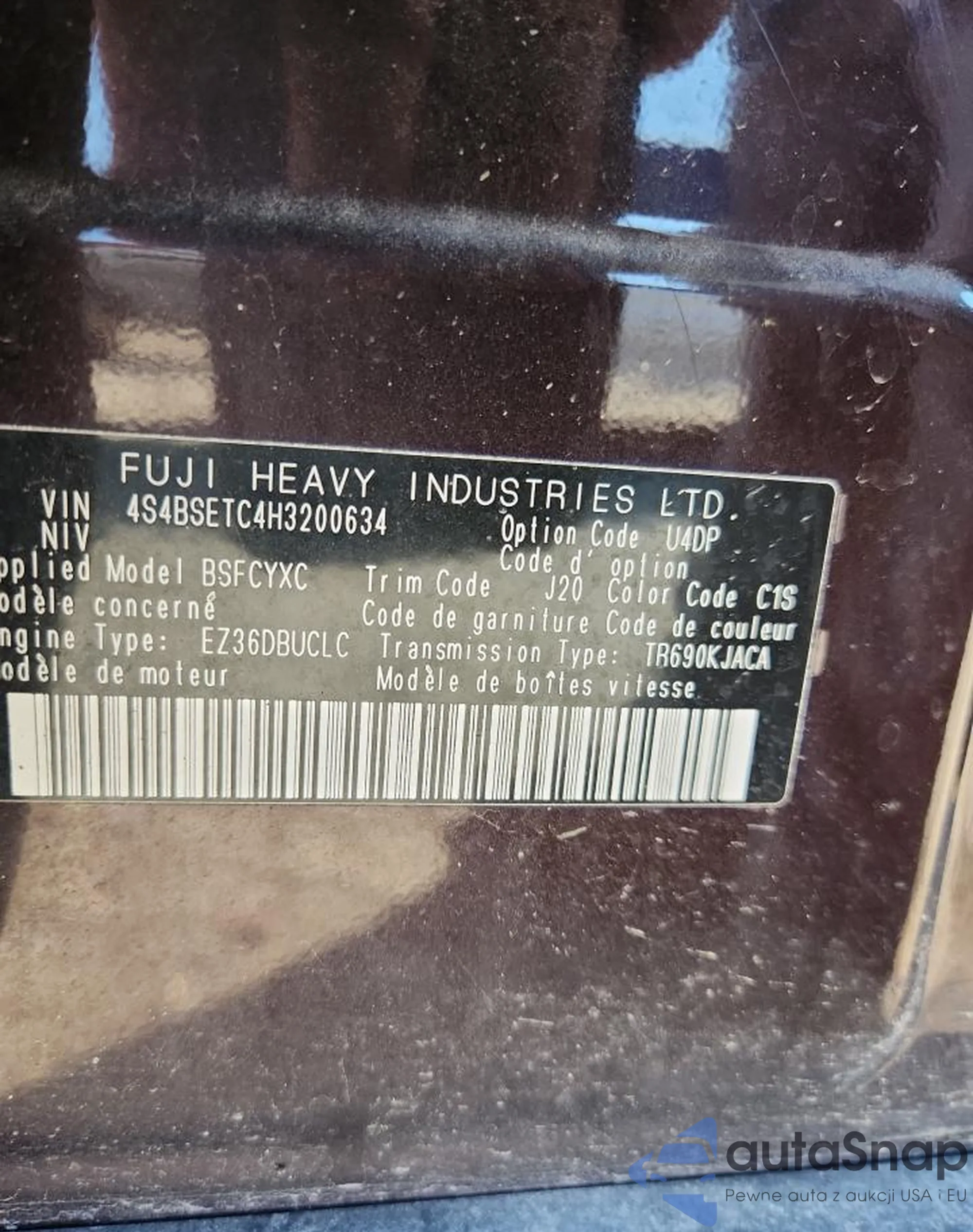 • VIN 4S4BSETC4H3200634