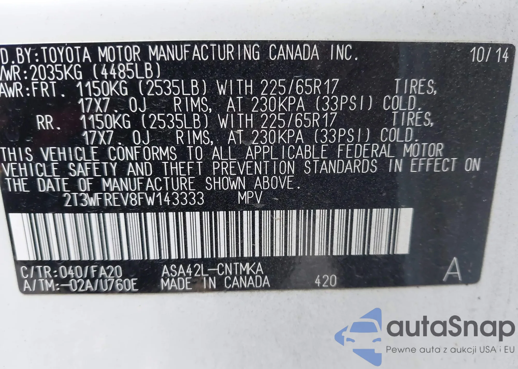 LOT: 43647679 VIN: JTDKN3DU8F1948013