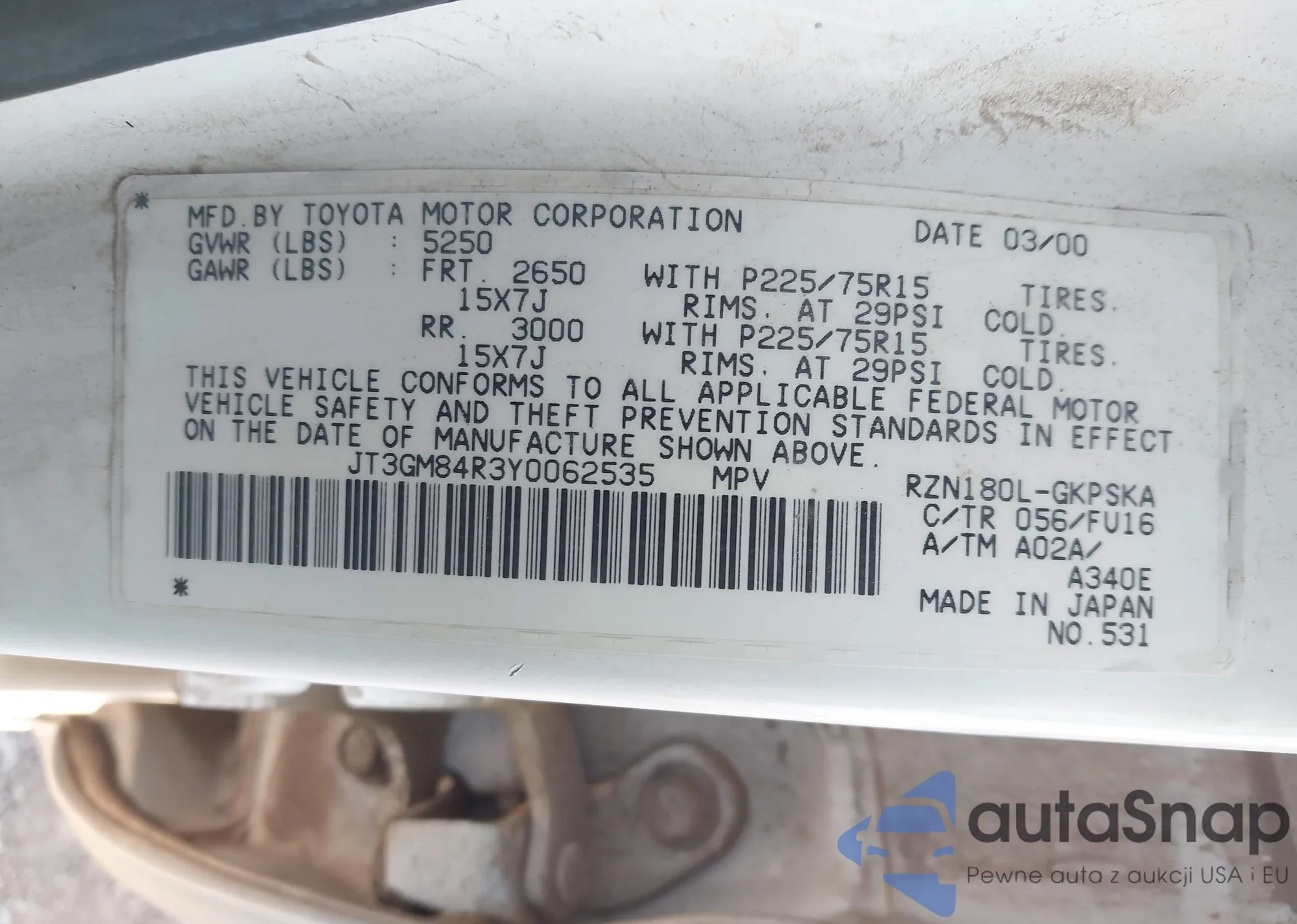 • VIN JT3GM84R3Y0062535