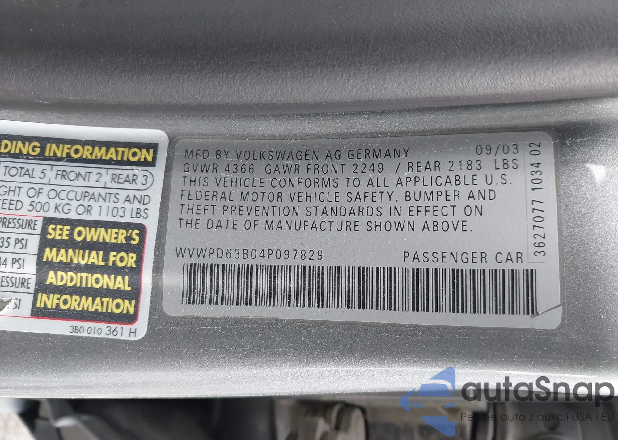 • VIN WVWPD63B04P097829