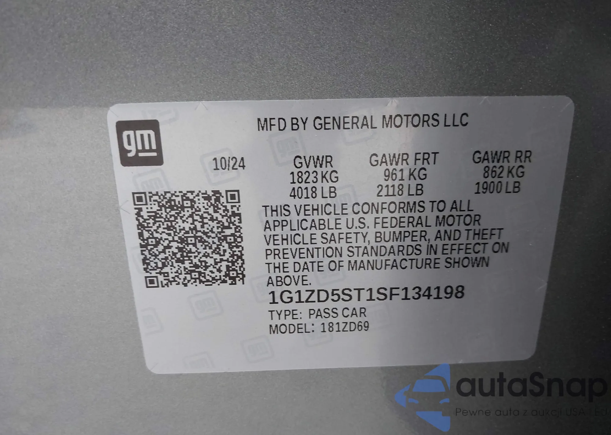 • VIN 1G1ZD5ST1SF134198