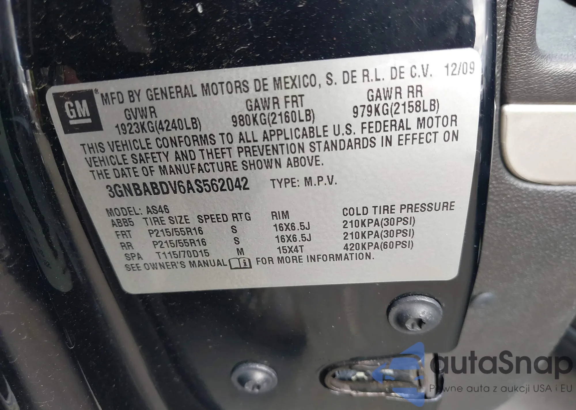 • VIN 3GNBABDV6AS562042
