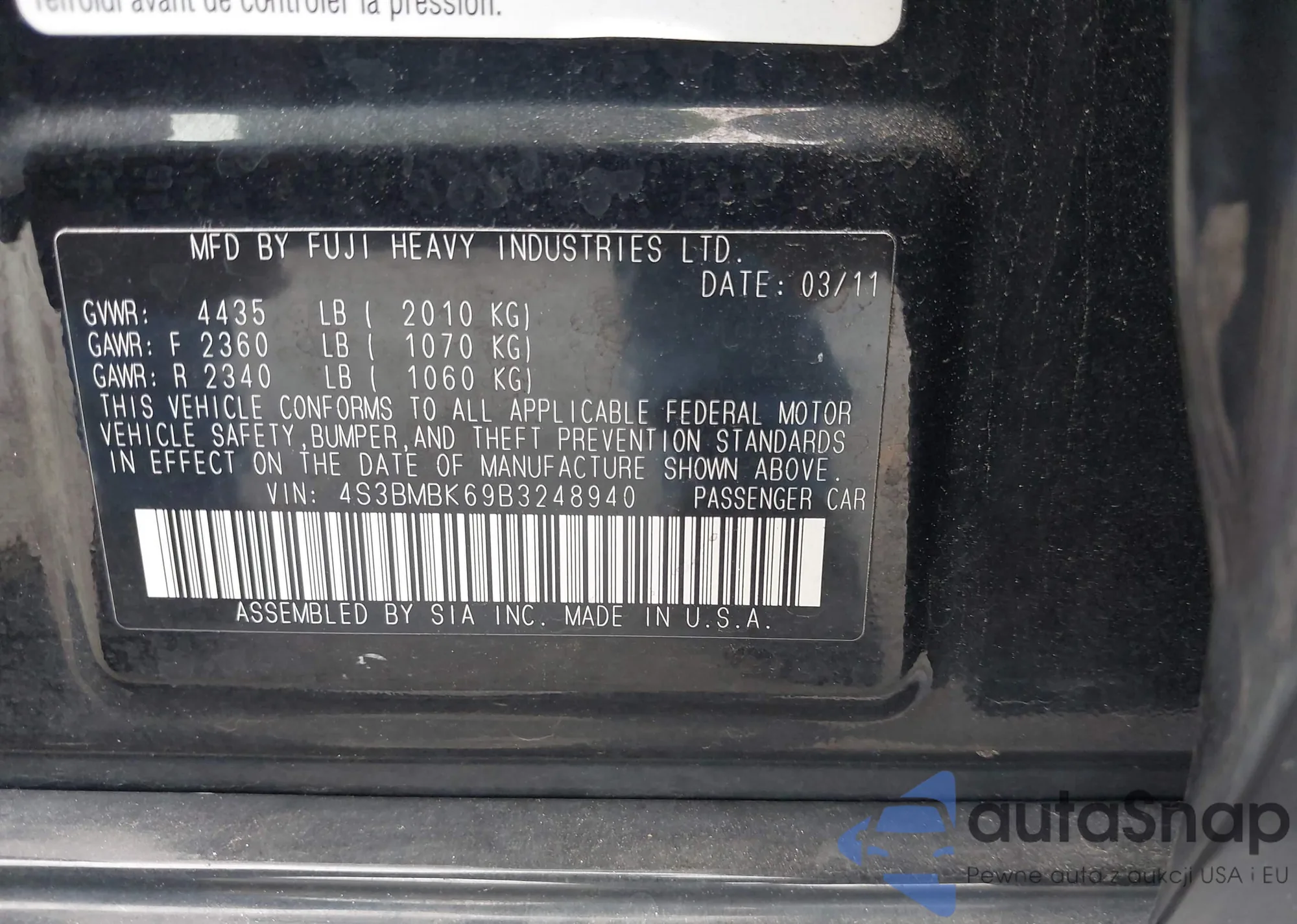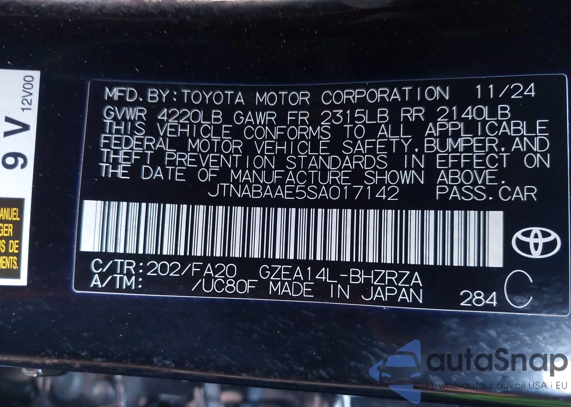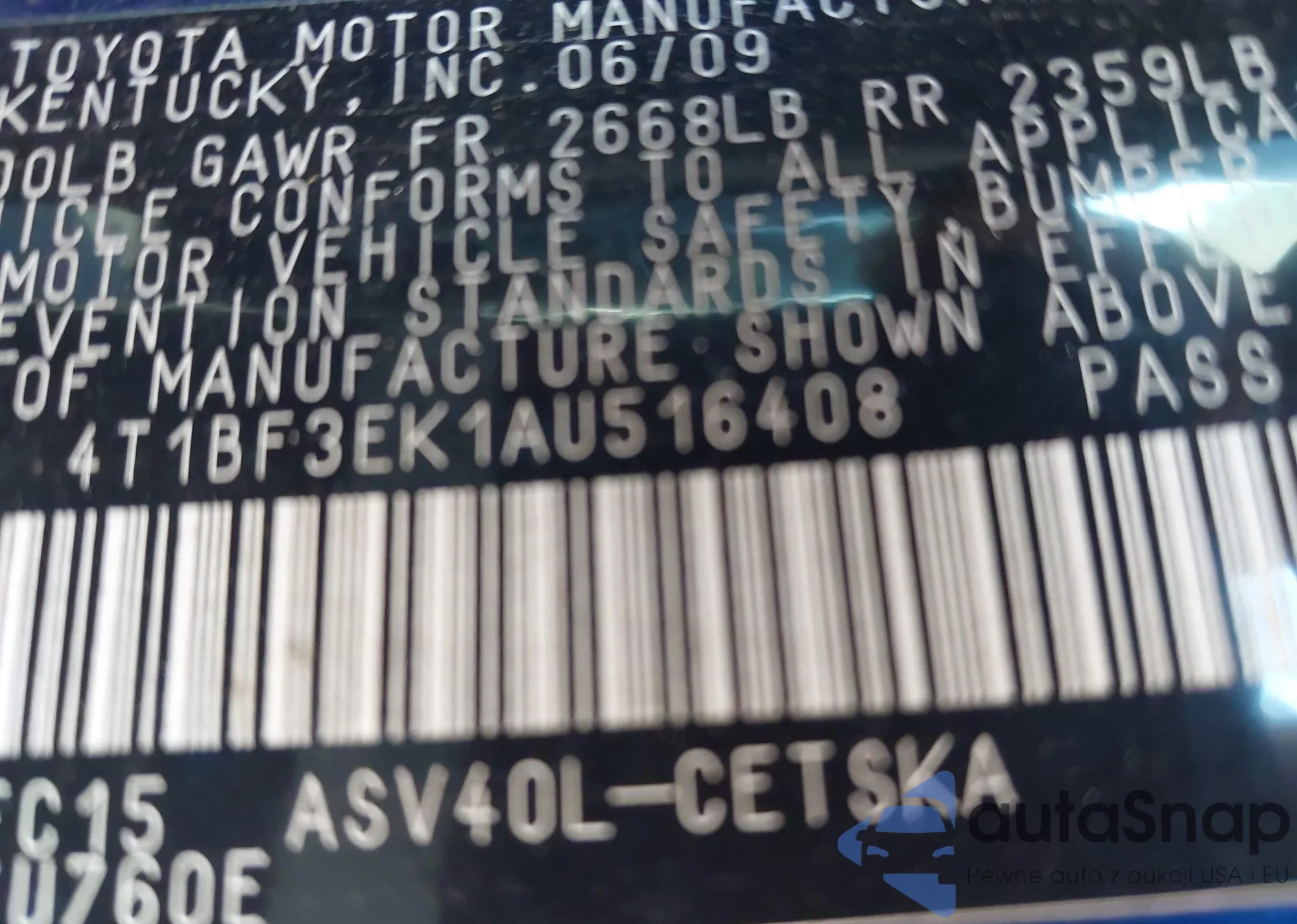 • VIN 4T1BF3EK1AU516408