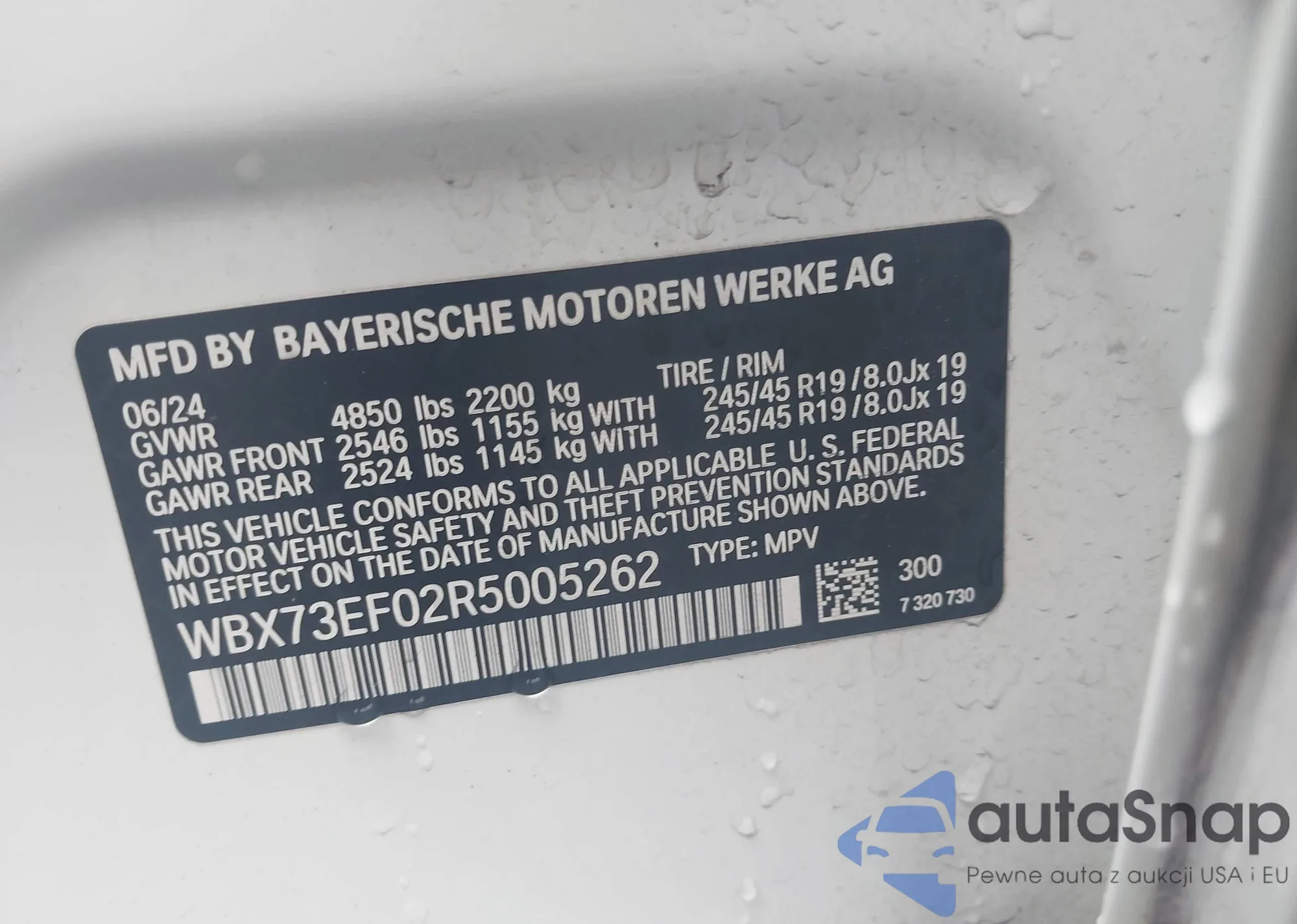 • VIN WBX73EF02R5005262